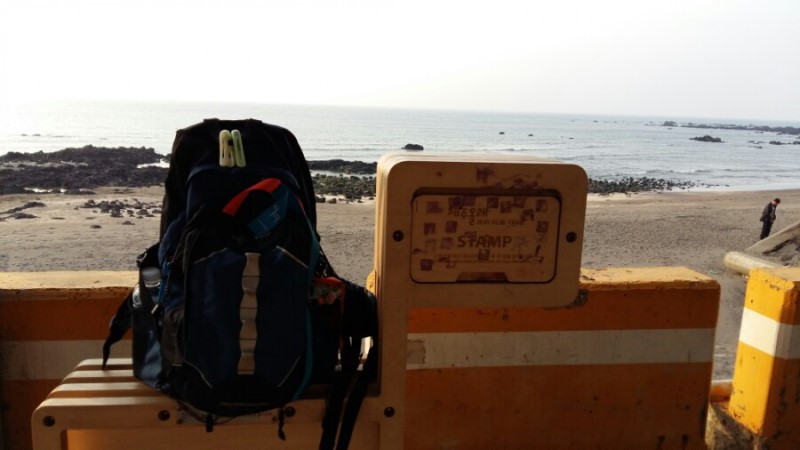 어느덧 6시에 해변 끝 지점 정자에서 중간 스탬프로 하루를 마감합니다. 오늘 오전은 추자도에서 배 타고 나오고, 오후는 오랜만에 친구를 만나서 아주 조금 걸었습니다.