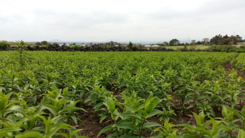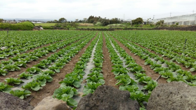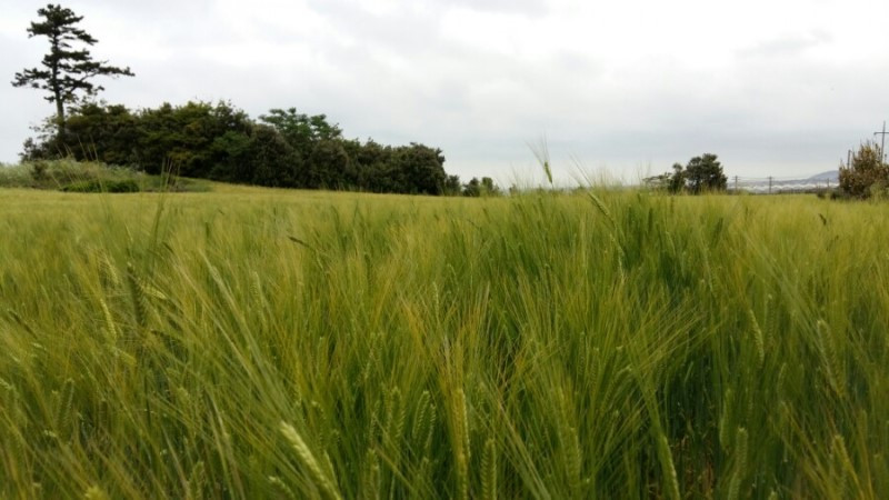 문서천까지 밭 사이로 난 좁은 올레를 걷습니다. 구름 낀 잿빛 하늘 아래 연둣빛, 초록빛 그리고 약간 노르스름 작물과 황톳빛 흙에 매료됩니다. 자연이 빚어낸 총천연색에 시신경이 마구 꿈틀거립니다. 또한, 시시각각 찾게 되는 올레 리본 때문에 수정체 운동으로 시력도 좋아질 것만 같습니다. 제주 오기 전 한 달 이상 지속한 감기 천식이 올레를 걷고 2주 만에 깨끗이 나았습니다.