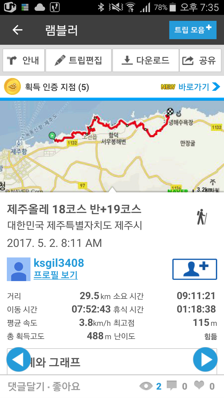 오늘은 펜이 블로그 이름처럼 '나 태어나 첫 경험' 무려 30km를 걸었습니다. 사우나까지 다녀온 만보기는 거의 5만 보에 이른 것에 펜이도 깜놀했습니다. 올레 걸을 땐 평균 3만 보였는데 말입니다. 덕분에 평소보다 일찍 잠들었습니다. 일찍 잔 덕분에 새벽에 올레 완주기를 블로깅할 수 있어 참 좋습니다.