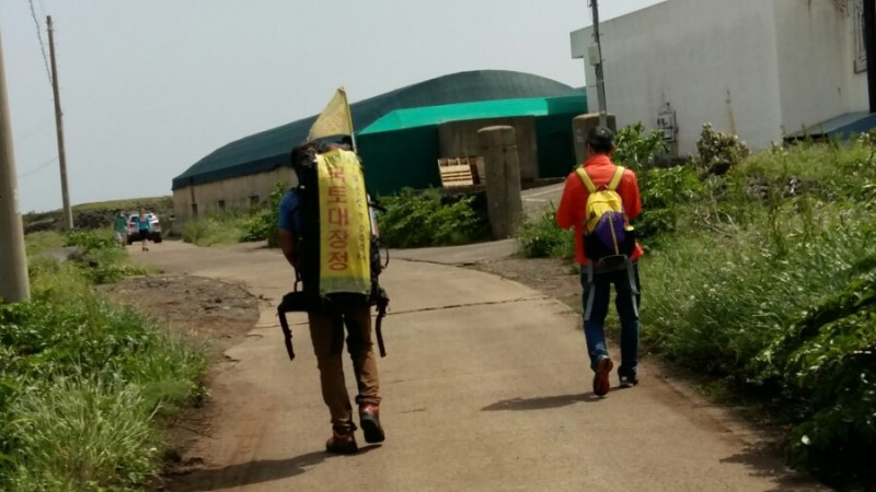이번이 세 번째 해안선 종주 도전이란다. 오늘로 82일째인데 그동안 신발 세 켤레를 교환했고, 그동안 면도를 안 했는지 하얀 수염이 마치 도사 같았습니다. 그동안 18개의 섬을 돌았고 제주도도 약 한 달 계획으로 17일째랍니다. 펜이 올레 완주 한 달은 명함도 못 내밀 형편입니다.