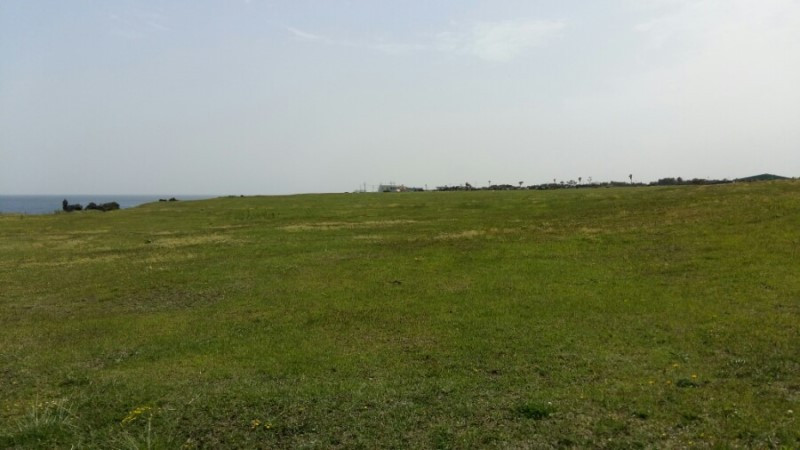 어느덧 육지길(?)이 끝나고 B코스와 만나는 바닷길 신풍 포구입니다. 갑자기 시원하게 녹색 향연이 펼쳐집니다. 신풍신천 바다목장입니다. 소들의 방목지입니다. 확 트인 초록 잔디와 파란 바다가 발로 찍어도 작품이 나올성싶습니다.