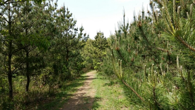 소나무와 삼나무 숲이 있는 통오름(143.1m)과 독자봉(159.3m)에서는 정말 내려오기 싫었습니다. 미세먼지가 전국을 강타한 오늘, 제주도도 대도시보다 높은 수치였으니까요. 아침 출발할 땐 어제 온 비로 파란 하늘이었는데 시간이 지날수록 먼발치 산은 온통 뿌옇습니다. 제주의 오름은 산림욕장입니다. 따로 산림욕장에 갈 필요가 없거든요. 산새 지저귀지, 산소 펑펑 쏟아지지, 이미 펜이는 자연인이 되었습니다. 그래서 일부러 천천히 걷습니다. 하지만 오르면 내려와야 하는 게 세상의 이치
