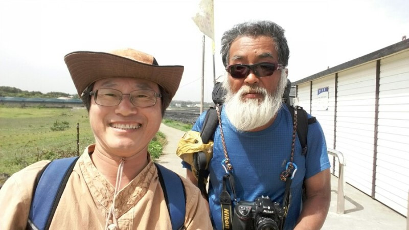 때마침 만난 7,000km 해안선을 걷는 '대한민국 곰' 닉네임을 가진 분과 사진도 찍습니다. 길에서 만난 인연은 오래전부터 아는 사이처럼 이렇게 서로 찍어주고 셀카도 찍습니다. 인터넷 검색을 해보니 꽤 유명한 사람입니다.