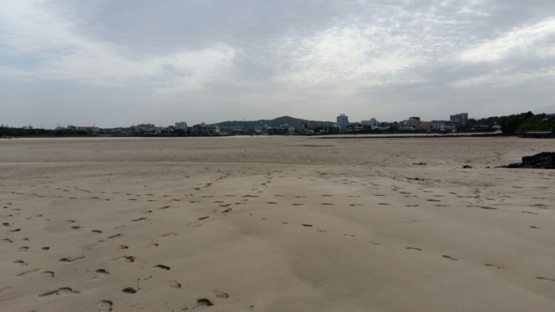 결론부터 말하겠습니다. 제목처럼 정말 지루한 코스가 마지막 표선 해비치 해변 백사장 한 방에 날아간 코스입니다. 올레의 9회 말 대역전극입니다. 이거 한 방 때문에 힘든 길 참고 참으며 걷고 또 걸었는지 모릅니다. 통오름과 독자봉을 제외한 길이 모두 콘크리트 아니면 아스팔트 길로 정말 지루했습니다. 그런데 표선 해비치 백사장의 너울이 만든 물결 모래에 자동으로 신발을 벗고 맨발로 걸었습니다. 단단한 물결 모래를 걷거나 바닷물 위를 걸으니 피로가 싹 가십니다. 지금까지 걸어온 지루함이 편안함으로 뒤바뀌는 대역전극이 펼쳐졌습니다. 몇 년 전에 와서 이런 맛을 느꼈는데 그곳이 3코스였는지 오늘에야 알았거든요. 정말 기막힌 역전 드라마입니다.