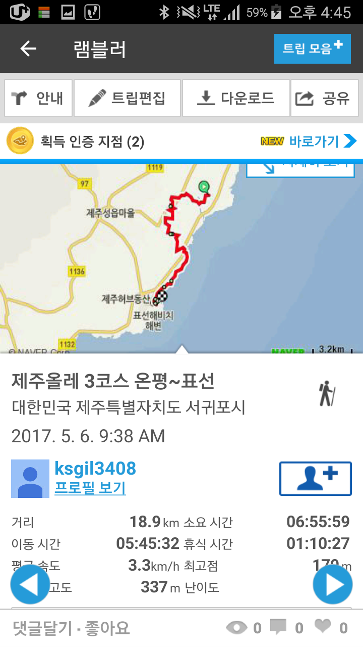 오늘은 또 정말 소중한 인연을 만났습니다. 250일 동안 오직 걸어서 텐트에 숙식하며 7,000km 해안선을 걷는 환경운동가입니다. 또 한 분은 블로그 서로이웃으로 표선 해비치 해변에서 카페를 운영하시는 제주 성산 서부교회의 장로님입니다. 인연 얘기는 만나는 지점에서 풀겠습니다ㅎㅎ