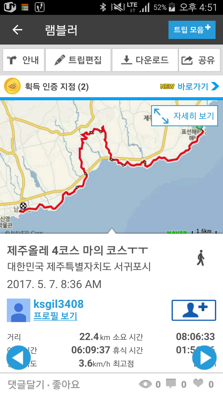 체력도 거의 바닥에 온 것 같다. 내일 7-1코스(제주월드컵경기장~제주올레여행자센터)만 끝내면 완주하게 된다. 하지만 지금은 너무 힘들다. 또 모래는 전국적으로 비가 온다니 한라산 등산은 포기하고 비행기 표를 예약했다. 이어서 마눌님과 함께하는 출국 계획도 잡혀서 7-1코스를 더 미룰 여유가 없다. 하지만 내일 자고 일어나 봐야 판단될 것 같다. 올레 완주 포스팅도 이걸로 마무리하고 숴야겠다.