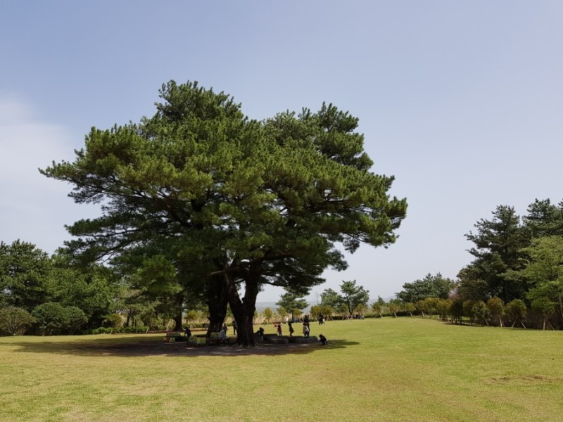 푸른 잔디에 우뚝 솟은 수백 살의 부부 소나무 주변에 소풍 나온 아이들이 뛰노는 모습은 평화 그 자체였다.