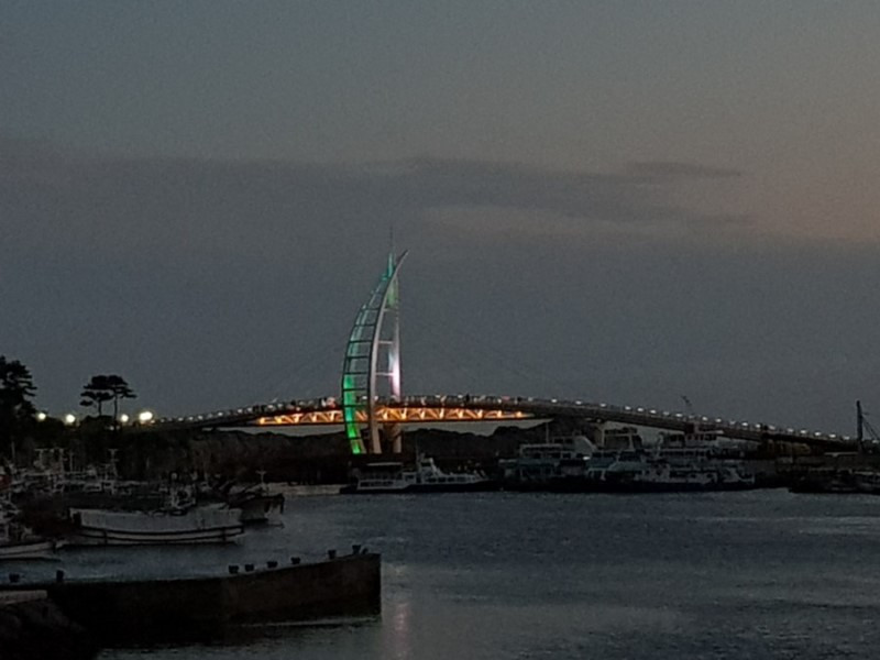 새연교 주탑을 비추던 태양은 눈 깜짝할 새 구름 너머로 사라졌다.