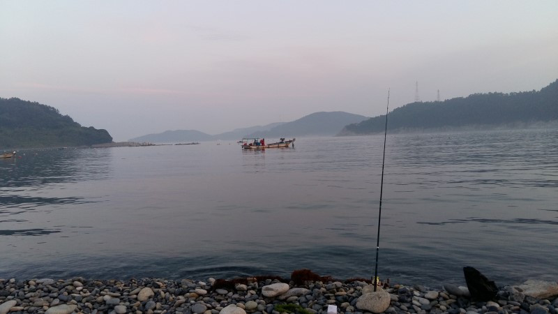 단잠에 빠진 마눌님이 깰세라 조용히 낚싯대를 들고 갯바위 근처로 갔다.