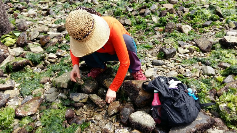 호미로 돌을 뒤집어 연신 게를 잡으셨다.