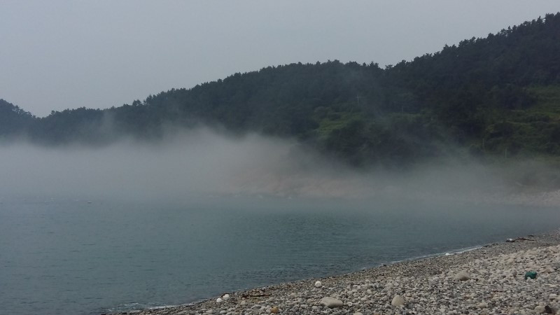산 아래서 춤추듯 흘러가는 해무는 골짜기를 한 바퀴 휘감아 돌아 마을로 빠져나갔다.