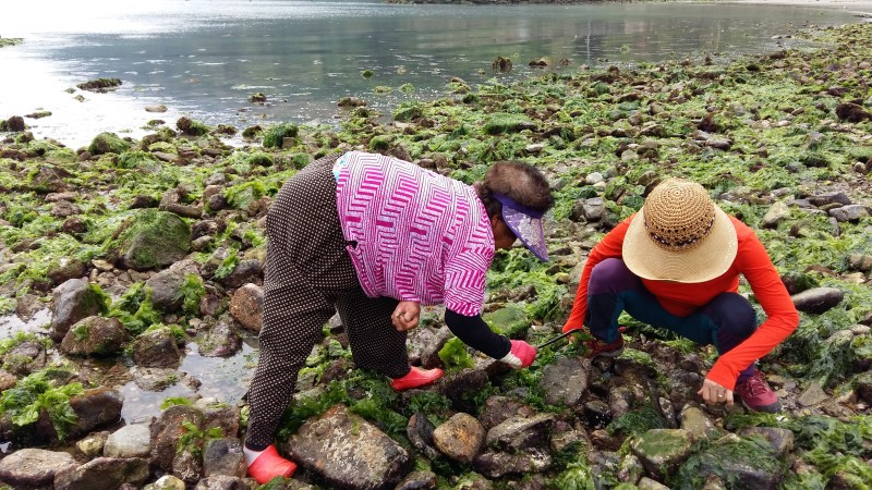 마침 할머님 두 분이 허리를 숙여 뭔가를 잡고 계셨다.