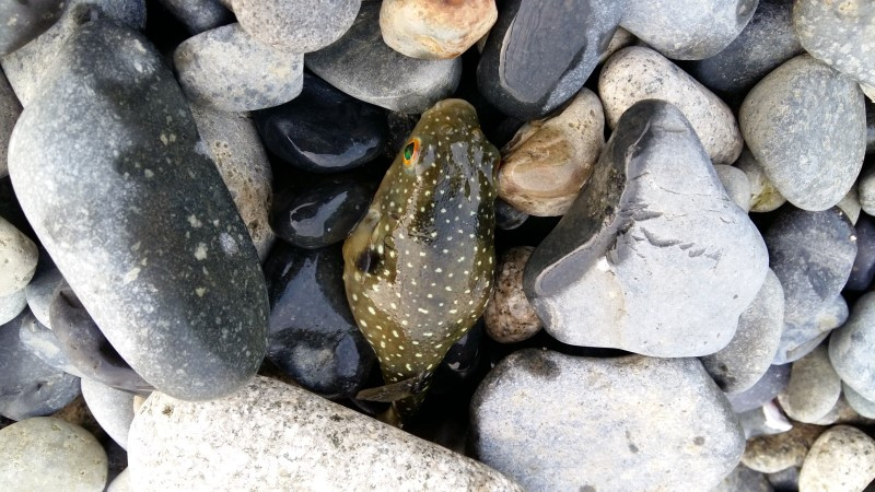 마침 광주 첨단에서 온 부부가 몽돌 해변에서 낚시 중이었다.