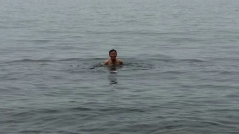완전 나체로 바닷물에 풍덩 뛰어든 형님
