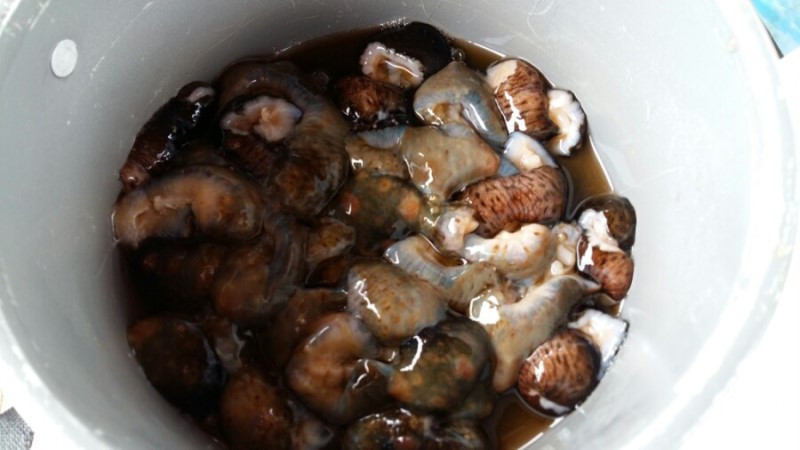 해녀가 갖잡은 싱싱한 해삼. 큼지막하고 쫄깃쫄깃 식감이 좋다.