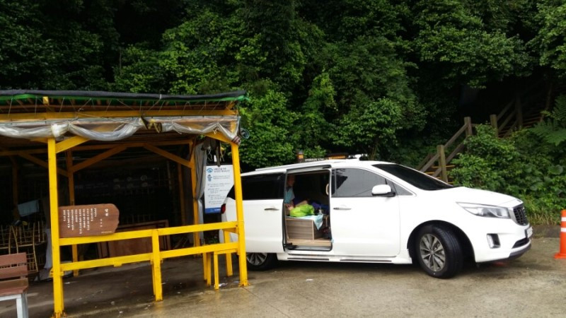 출발지 광주에서는 구름만 조금 끼었는데 경유지 보성에 다다르자 비가 내렸다.