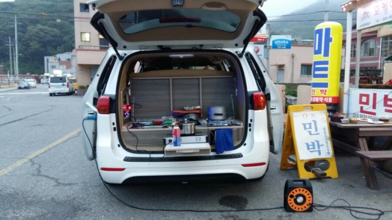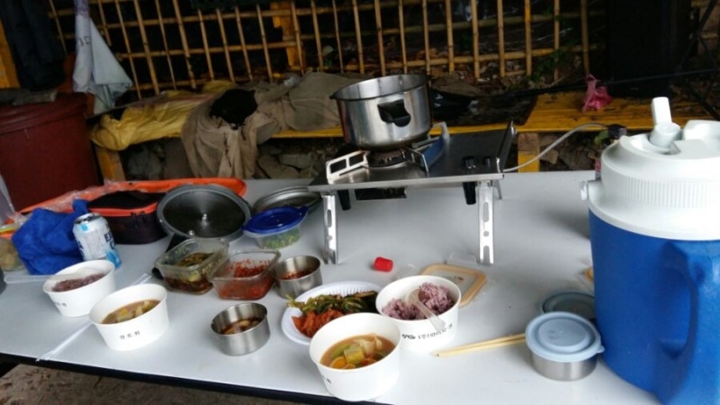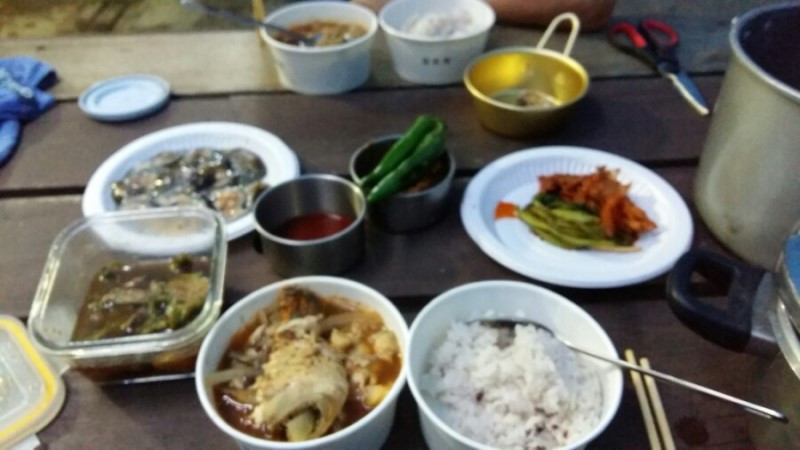 민박집에서 간당간당한 전기도 충전하고 물탱크도 채우고 민박집 테이블에서 만찬도 즐겼다.