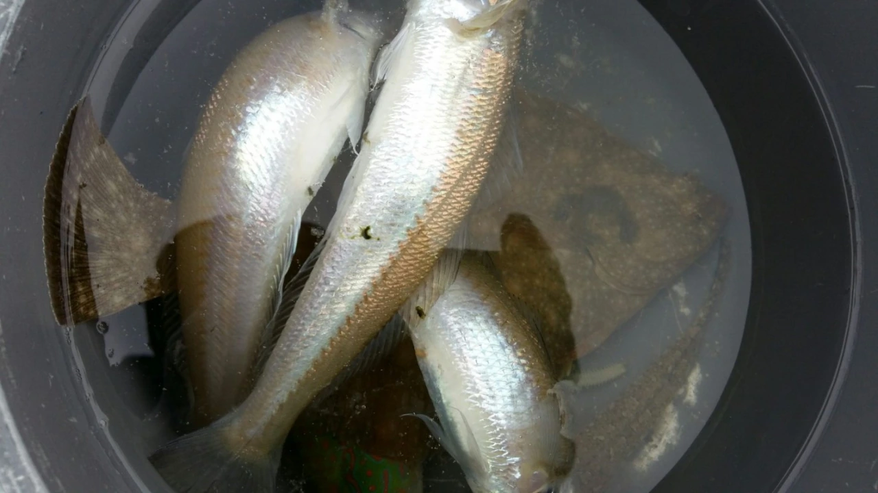 오늘의 수확물은 작은 도다리 3마리, 모래무치 4마리다.