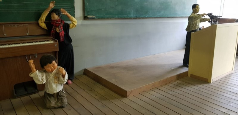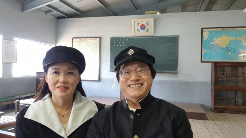 70년대의 실제 크기 모습 그대로 재현해놓은 국민학교 교실을 보고 함박웃음을 터트렸다.