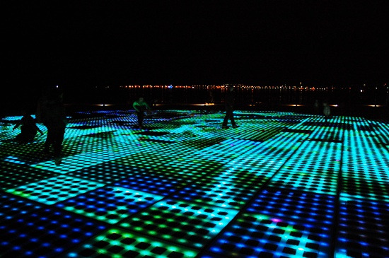 자다르 시내는 ‘OO’단길이라 불리며 핫해진 여느 동네보다도 작아 시내 산책이라는 말을 붙이기가 머쓱했다. 그나마 로마 시대 유적이 있지만 바로 전에 들른 스플리트에 비할 바가 아니었다. 계단에 걸터앉아 단출한 음계만 듣고 있자니 심심해졌다. 이름만 번지르르하지 별것 없구나, 실망하며 호텔로 돌아갔다. 밤이 되고 나서야 다시 밖으로 나왔다. 저녁을 먹고 또 바다 오르간에 갔다. 안타깝게도 갈 만한 곳이 그곳뿐이었다. 그런데 바다 오르간 근처에 무심하게 깔려 있던 둥근 원판에서 형형색색의 LED 전구를 밝히고 있었다. 오르간 연주의 스펙터클함을 기대한 내게 보란 듯이 스펙터클한 빛 연주를 보이고 있었다. 오후의 실망은 원판 위를 유영하는 빛 그림자와 함께 유유히 사라졌다. 끽해야 서너 개의 음이 만드는 바다 오르간의 멜로디마저 바흐의 토카타와 푸가 선율만큼 웅장하게 들렸다.