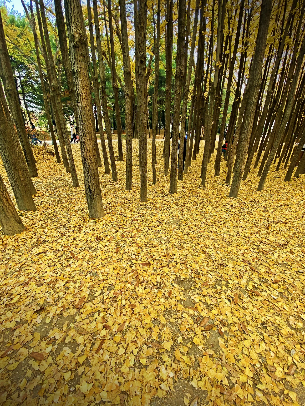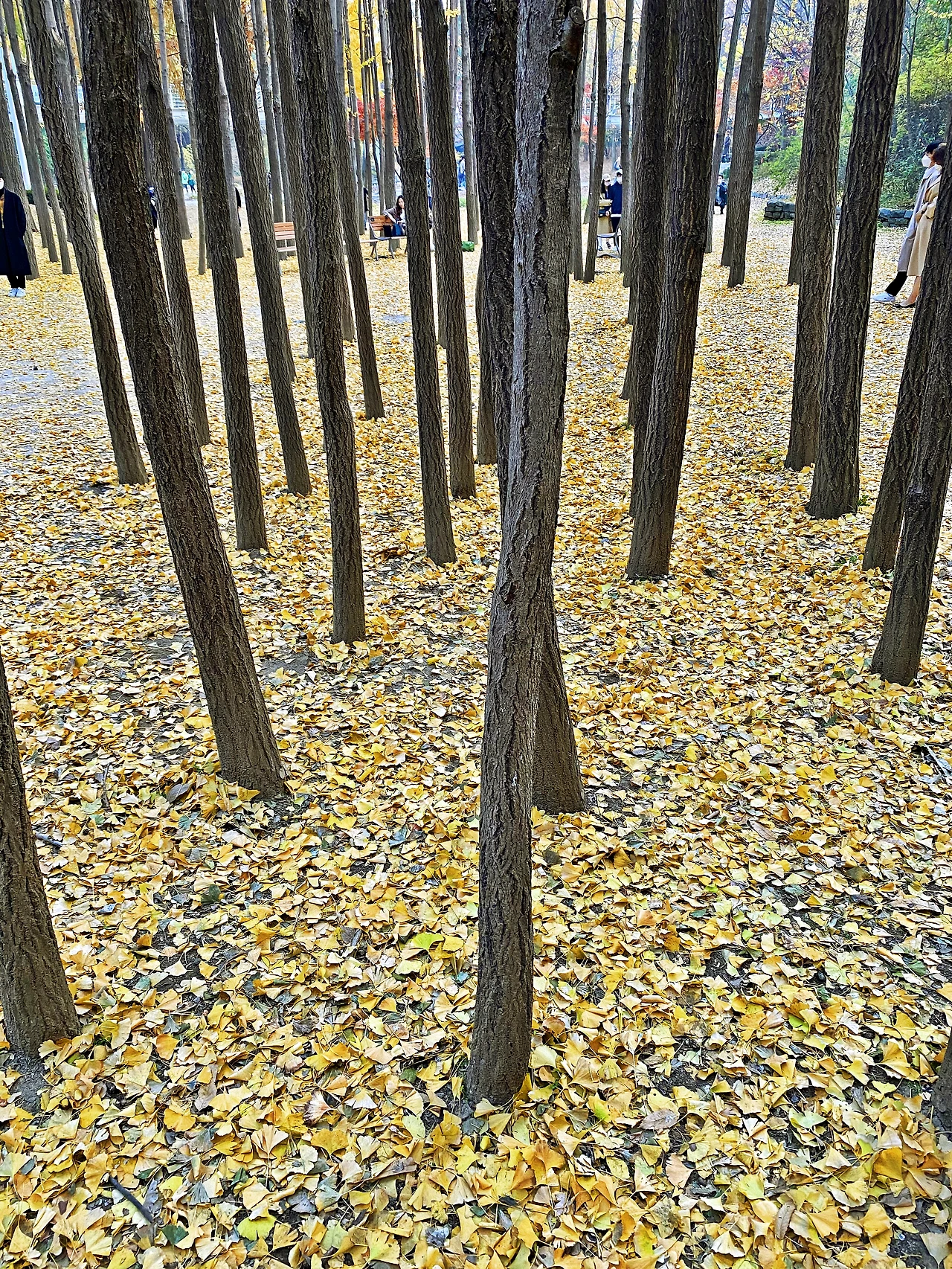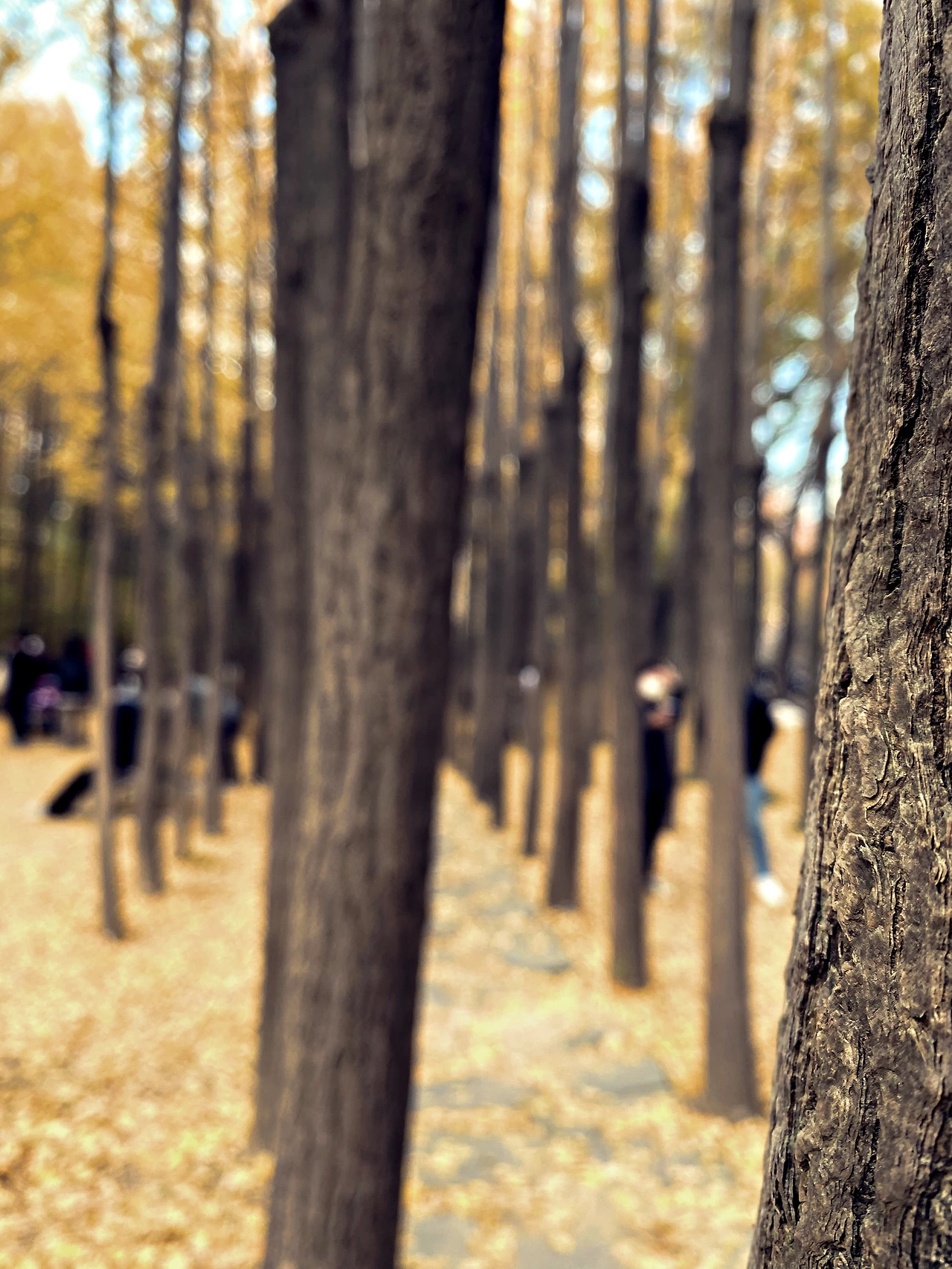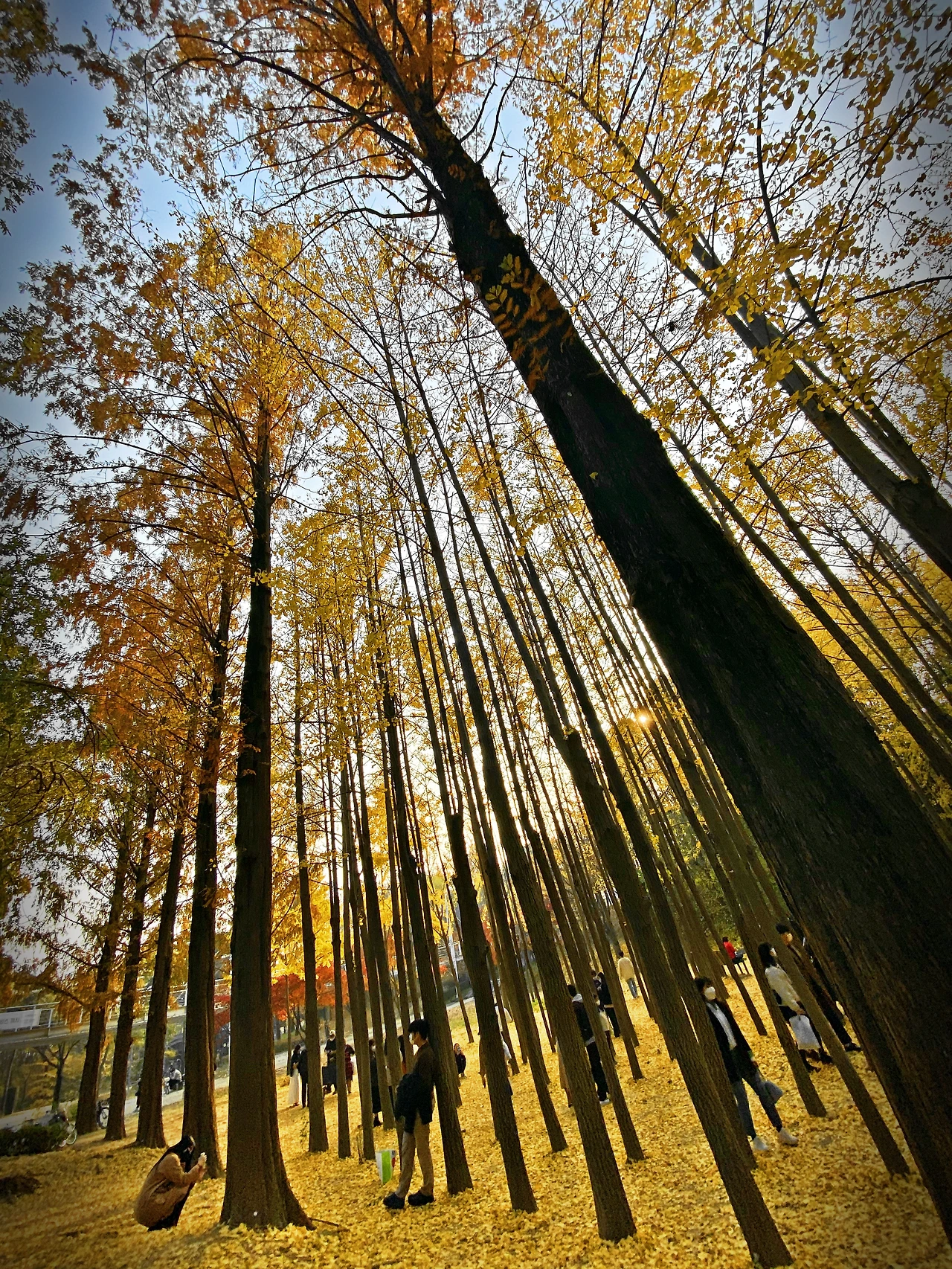 노오란 색감이 더 드러난 '노르스름'한 서울숲의 풍경 은행나무 숲이 있다보니 아무래도 노르스름 카테고리의 사진이 많다 잎이 많이 떨어졌지만, 그 떨어진 잎이 숲길을 노르스름하게 물들였다. 이날 사진은 아이폰으로 촬영. x1 배율 vs. x0.5 배율 비교-