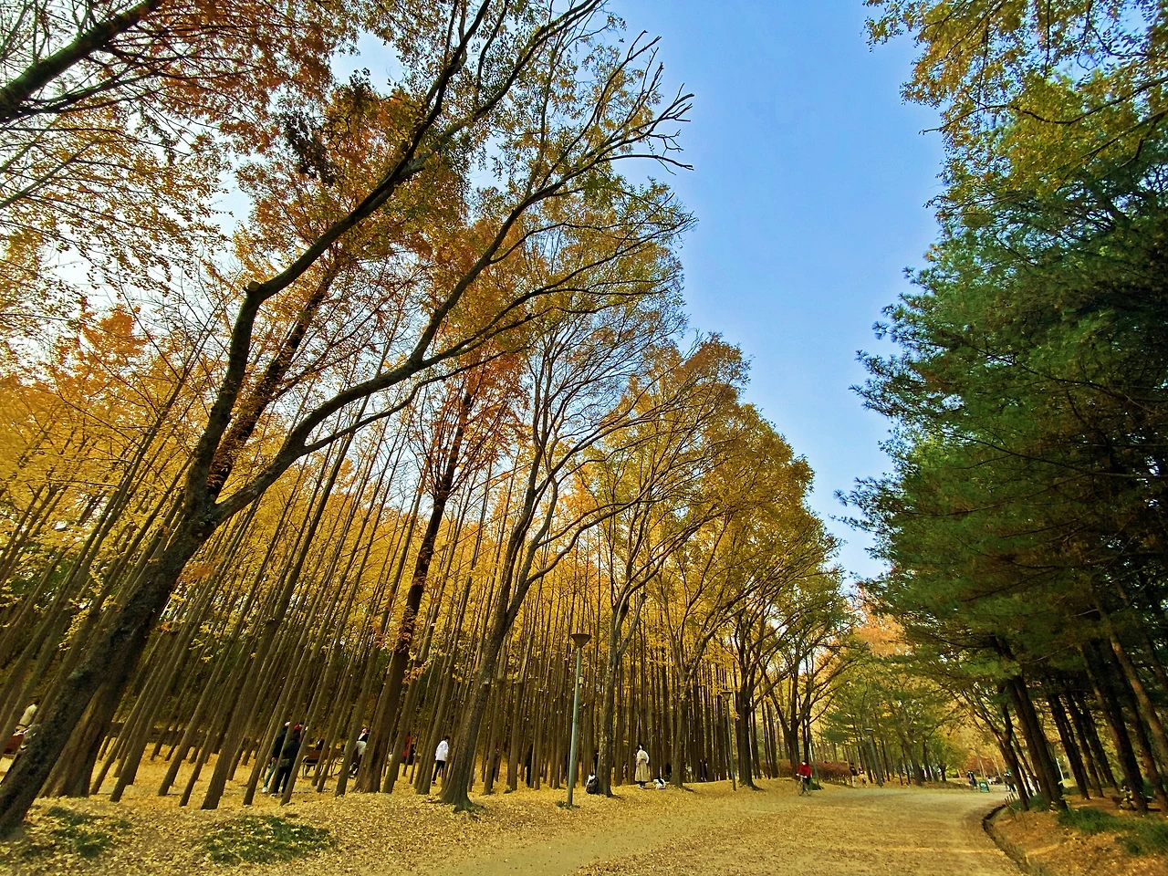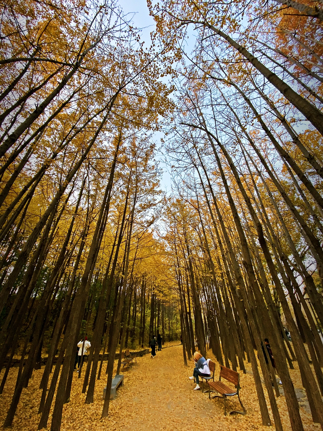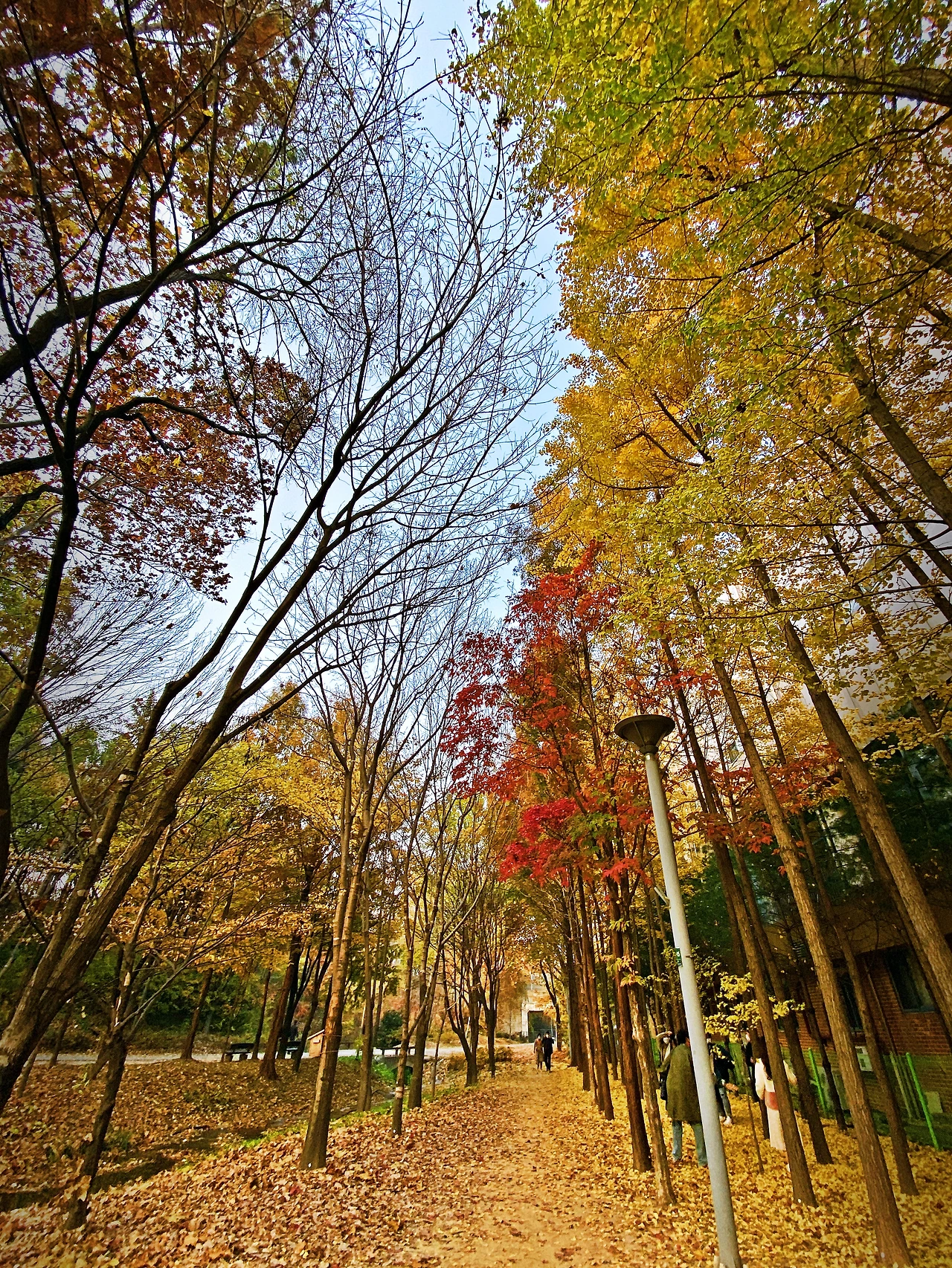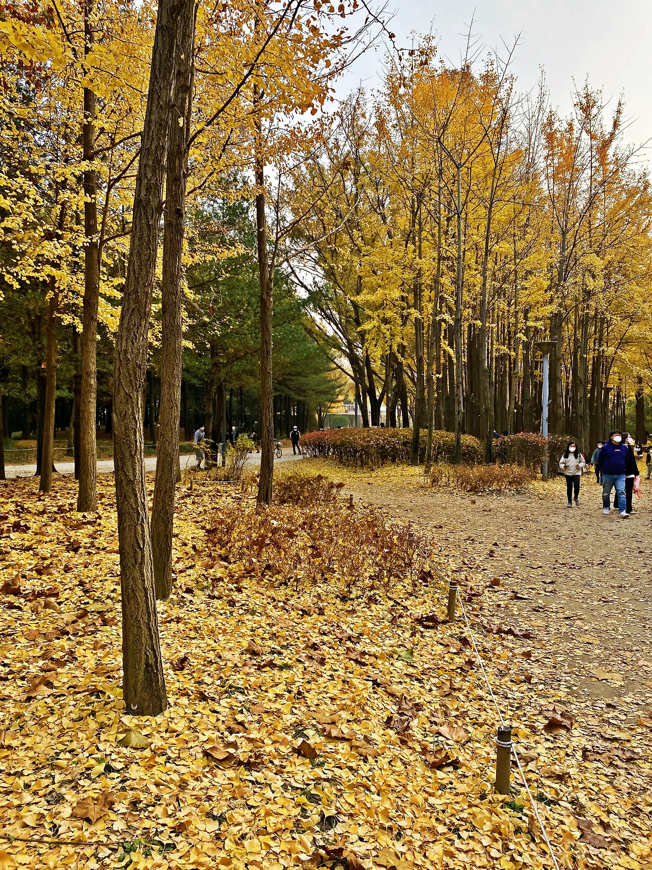 노오란 색감이 더 드러난 '노르스름'한 서울숲의 풍경 은행나무 숲이 있다보니 아무래도 노르스름 카테고리의 사진이 많다 잎이 많이 떨어졌지만, 그 떨어진 잎이 숲길을 노르스름하게 물들였다. 이날 사진은 아이폰으로 촬영. x1 배율 vs. x0.5 배율 비교-