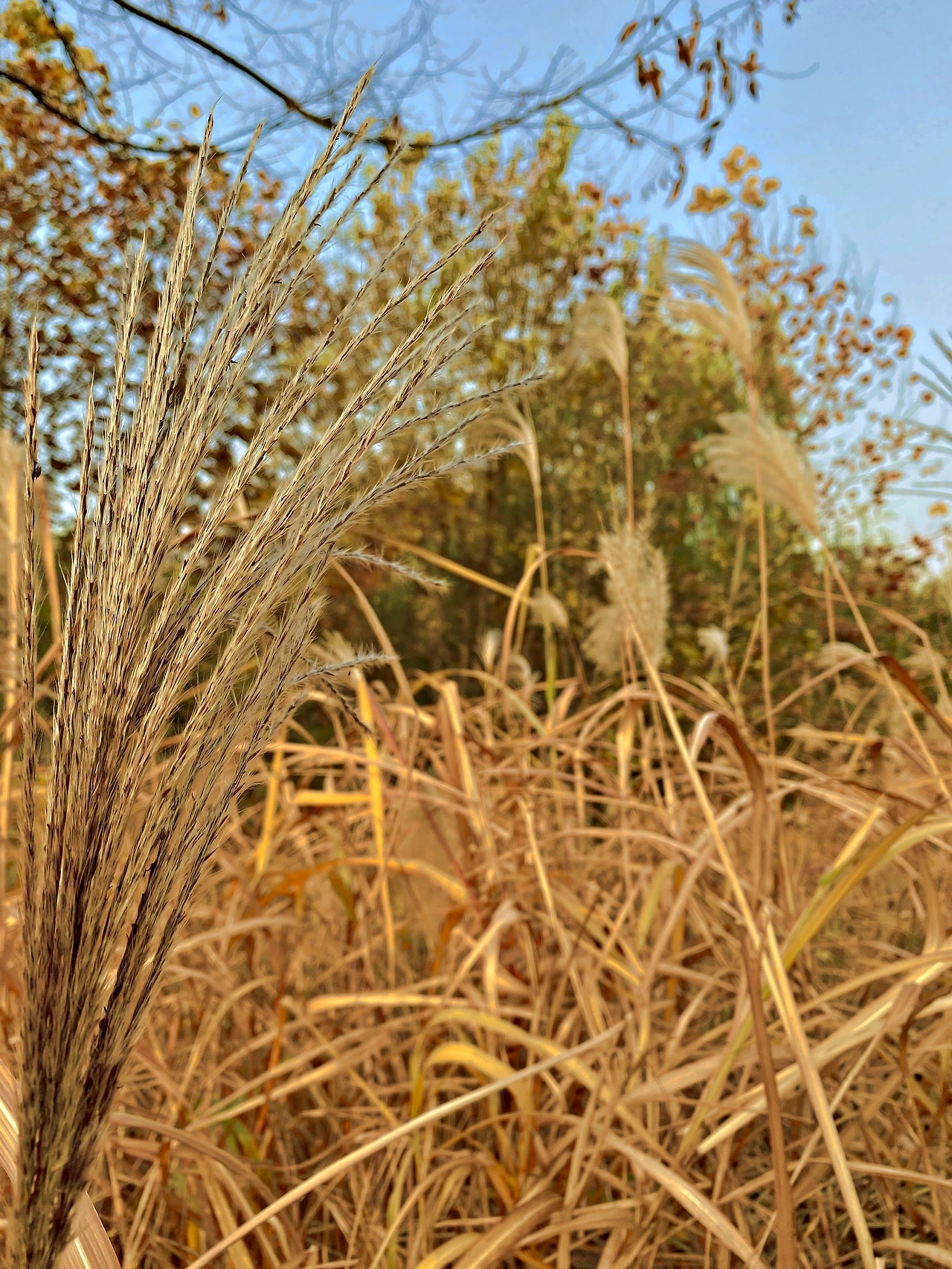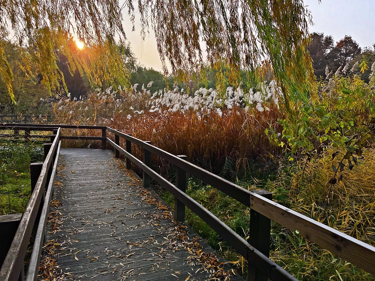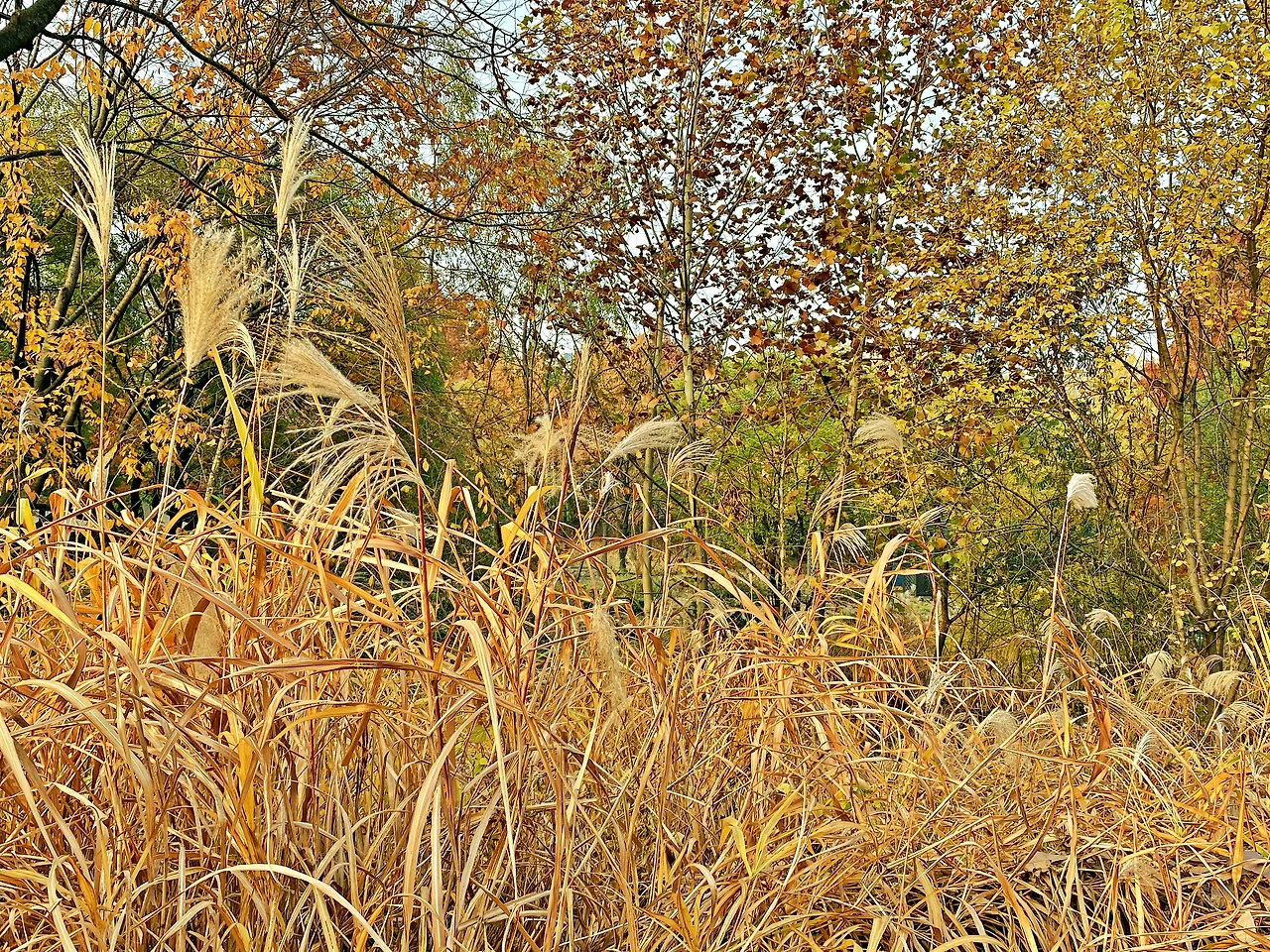 은행나무 숲을 나와 길 따라 걸으니 갈대로 둘러쌓인 데크가 이어졌다. 역시 갈대는 '노르스름' 카테고리에 어울린다.
