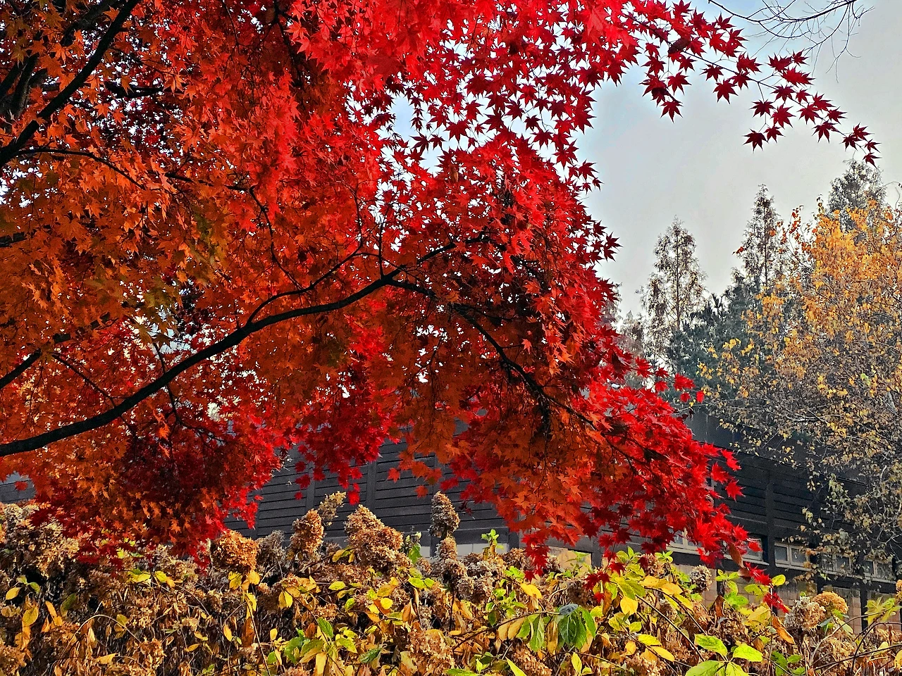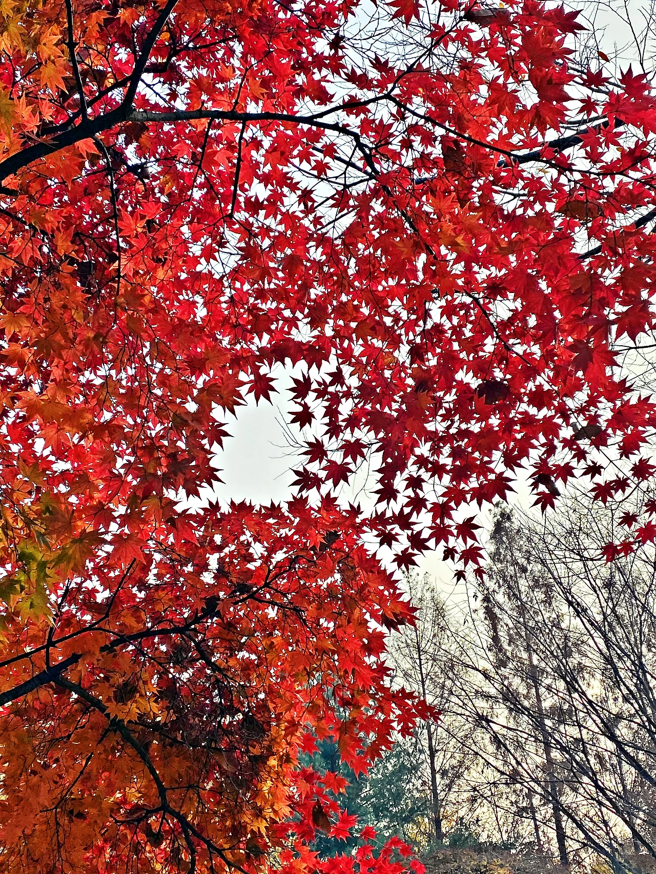 불그스름하다기엔 '빨간' 채도가 더 강한 단풍잎도 아직 남아 있었다.