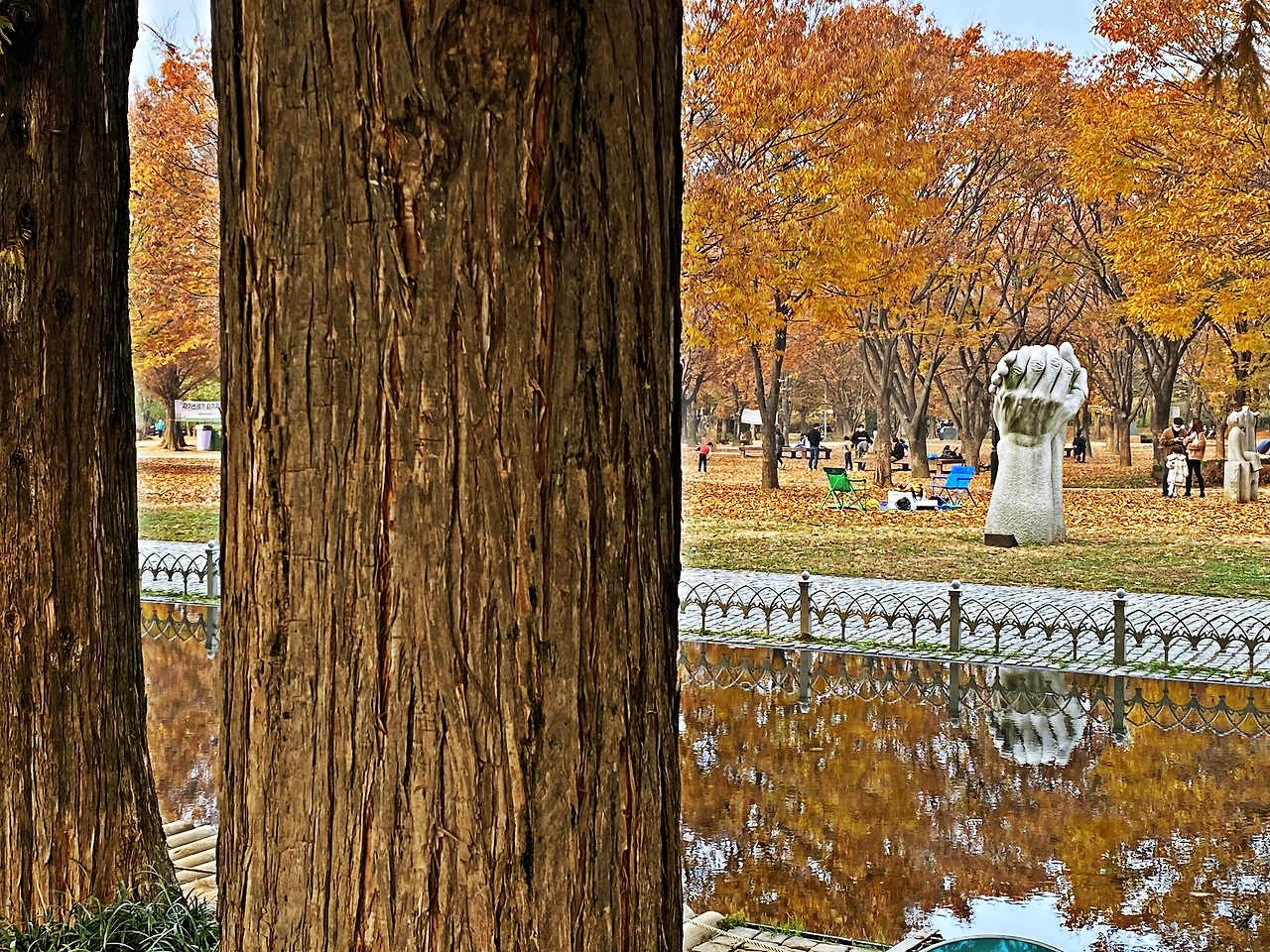 노르스름한 은행 잎에서 불그스름한 단풍 잎으로 시선을 옮긴다 붉은 빛을 좀 더 담아 본 '불그스름'한 서울숲. 가을의 정취는 노르스름보다는 불그스름이 더 좋다.