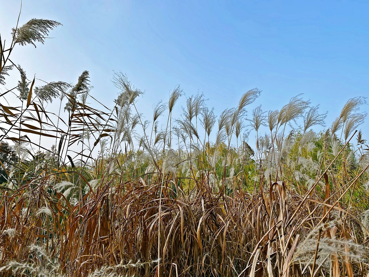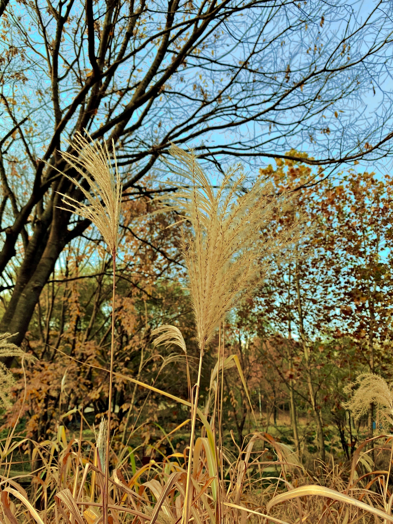 갈대는 노르스름하지만, 하늘이 더 많이 나왔으니 푸르스름한 사진으로-