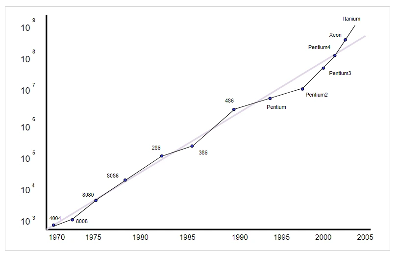 인텔 공동 창립자인 고든 무어는 반도체 집적회로 트랜지스터수가 24개월마다 2배씩 증가한다는 법칙이다. 즉, 컴퓨터의 성능이 2배씩 빨리 진다는 의미로도 해석된다. 하지만 현재 우리 평행 우주에서는 컴퓨터 CPU의 성능이 빨리 지는 것을 체감하기 어렵다.
