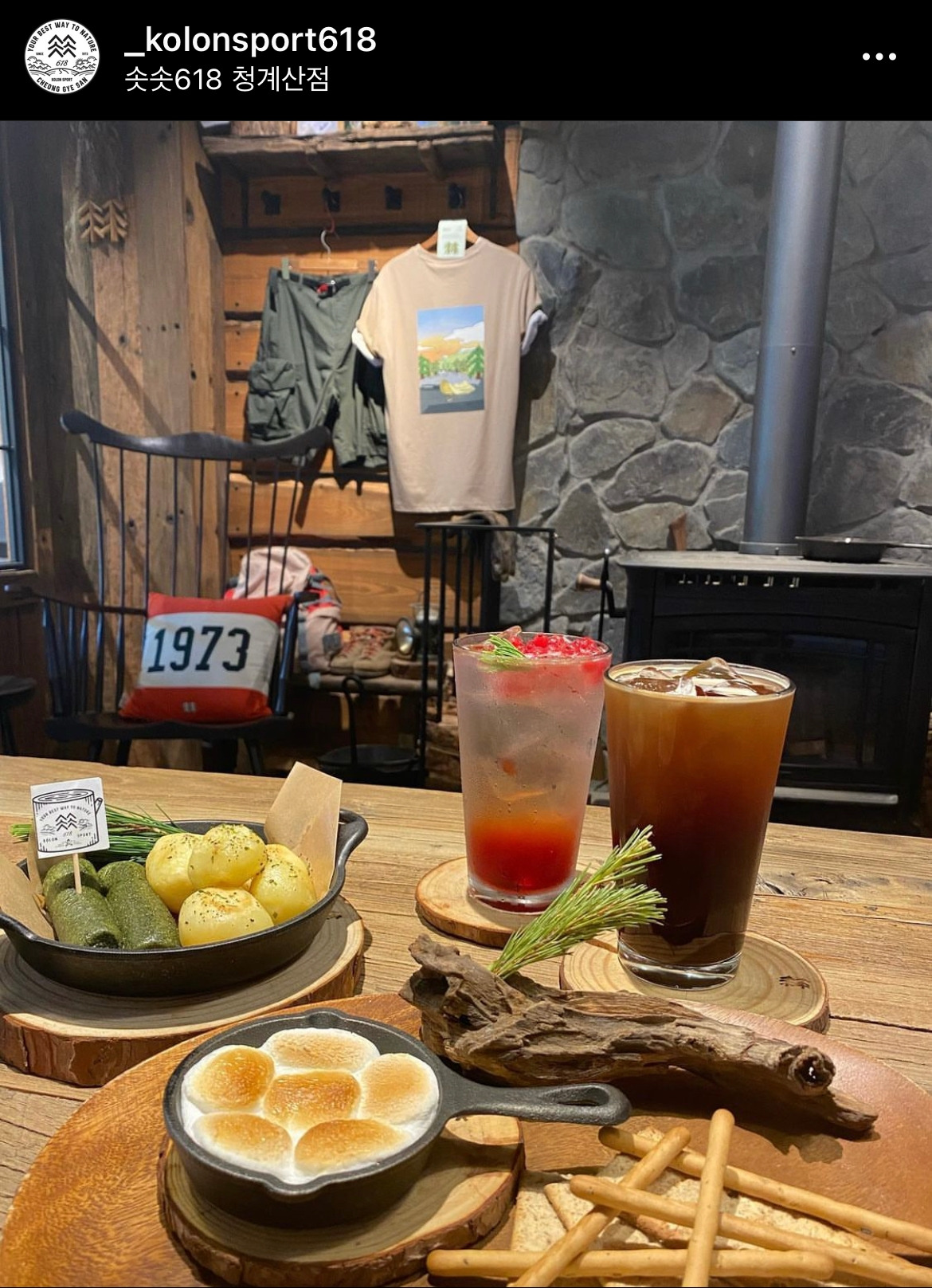 해외에 있는 산장을 모티브로 한 자연주의 컨셉이에요. 시그니처 메뉴는 푸른솔에이드로 솔잎(솟솟)을 강조한 메뉴예요. 디저트도 자연주의 컨셉을 고려하여 고구마, 쑥, 가래떡을 제공했고 인테리어로는 벽난로, 주물 플레이트 등이 있었죠. 어느 산장에 놀러 와 고구마를 구워 먹는 기분으로 방문하여 체험하는 공간이었어요.
