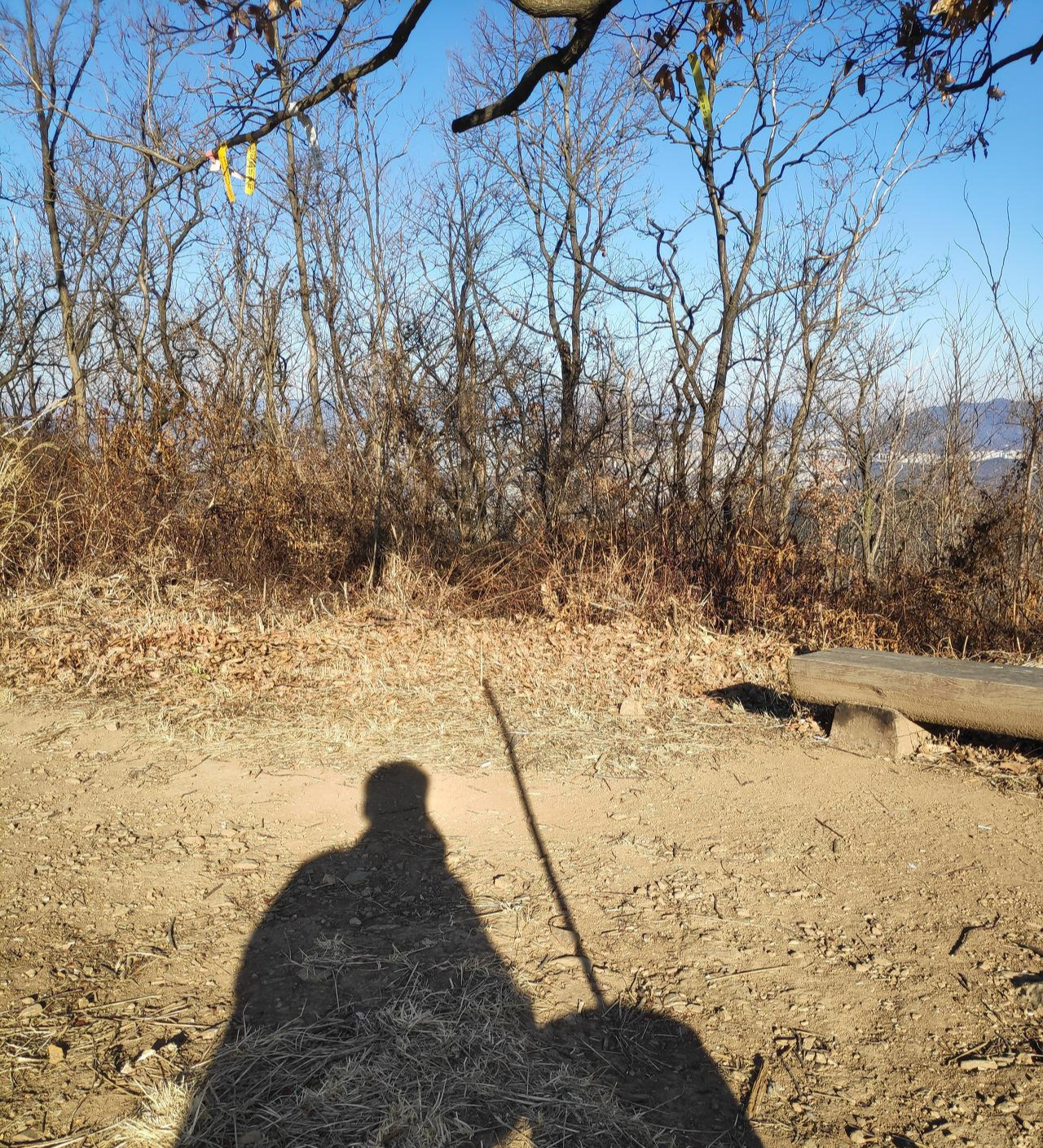 풍경이 절경인 유명한 산은 아니지만 가끔 삶의 무게가 무거워질 때면 찾는 뒷산은 올라가는 등산로가 쉴틈이 없는 매우 경사가 높은 산이다. 올라가는 데 힘이 들뿐이지 산 높이는 해발 489.3m로 평범하고 높지 않다. 유명하지도 않은 산을 혼자 등산을 한다는 건 고독하고 매력적이다. 오르며 내려오며 사람을 보기 힘들고, 오직 나 자신이 산에 존재하게 된다. 그 하나뿐인 존재감으로 난 삶이 힘겨울 때쯤 뒷산을 찾는다. 그냥 등산을 하는 것도 아니다. 항상 수련용 목검을 지팡이 삼아 산 정상에 올라 약간의 '검무'를 한다.