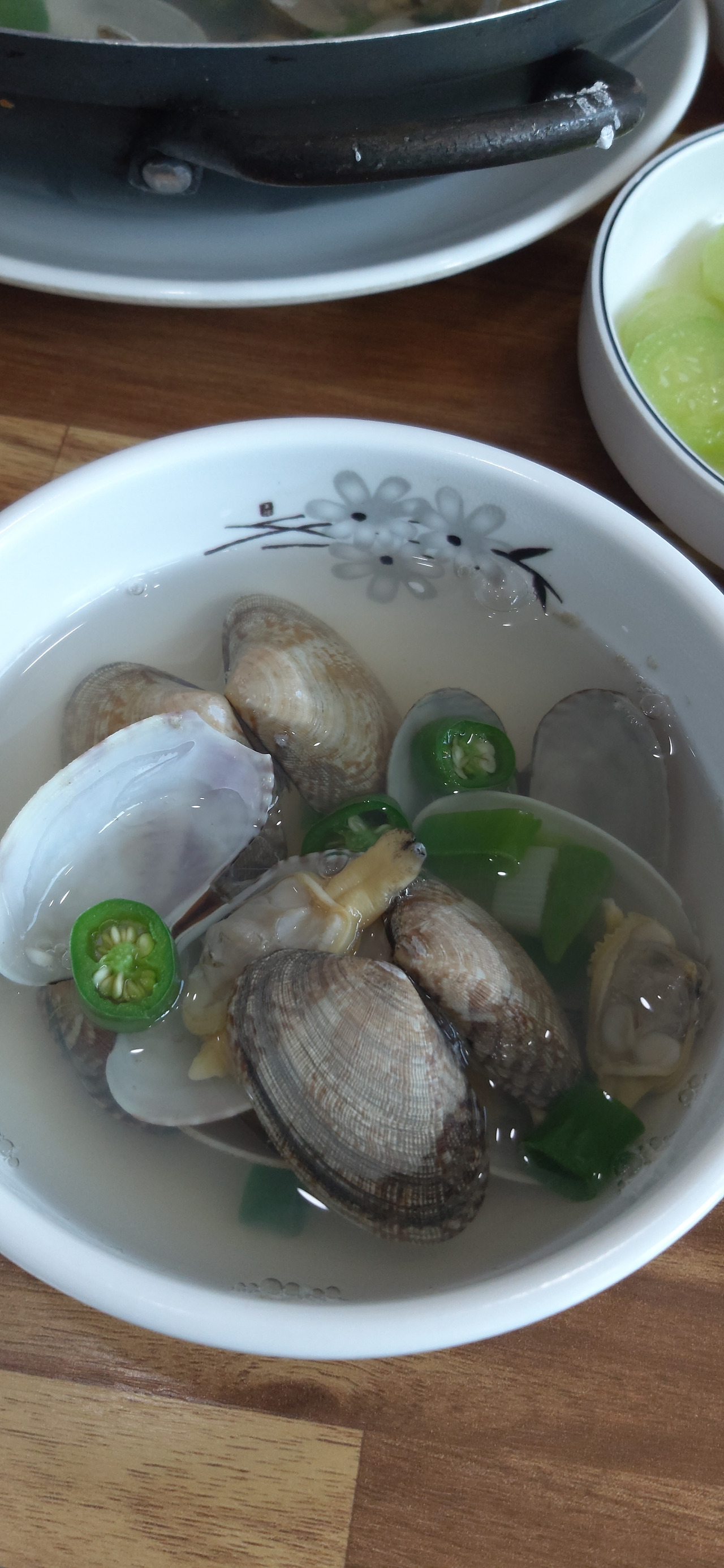 낙지 비빔밥에는 얼큰한 바지락 국물이 최고다