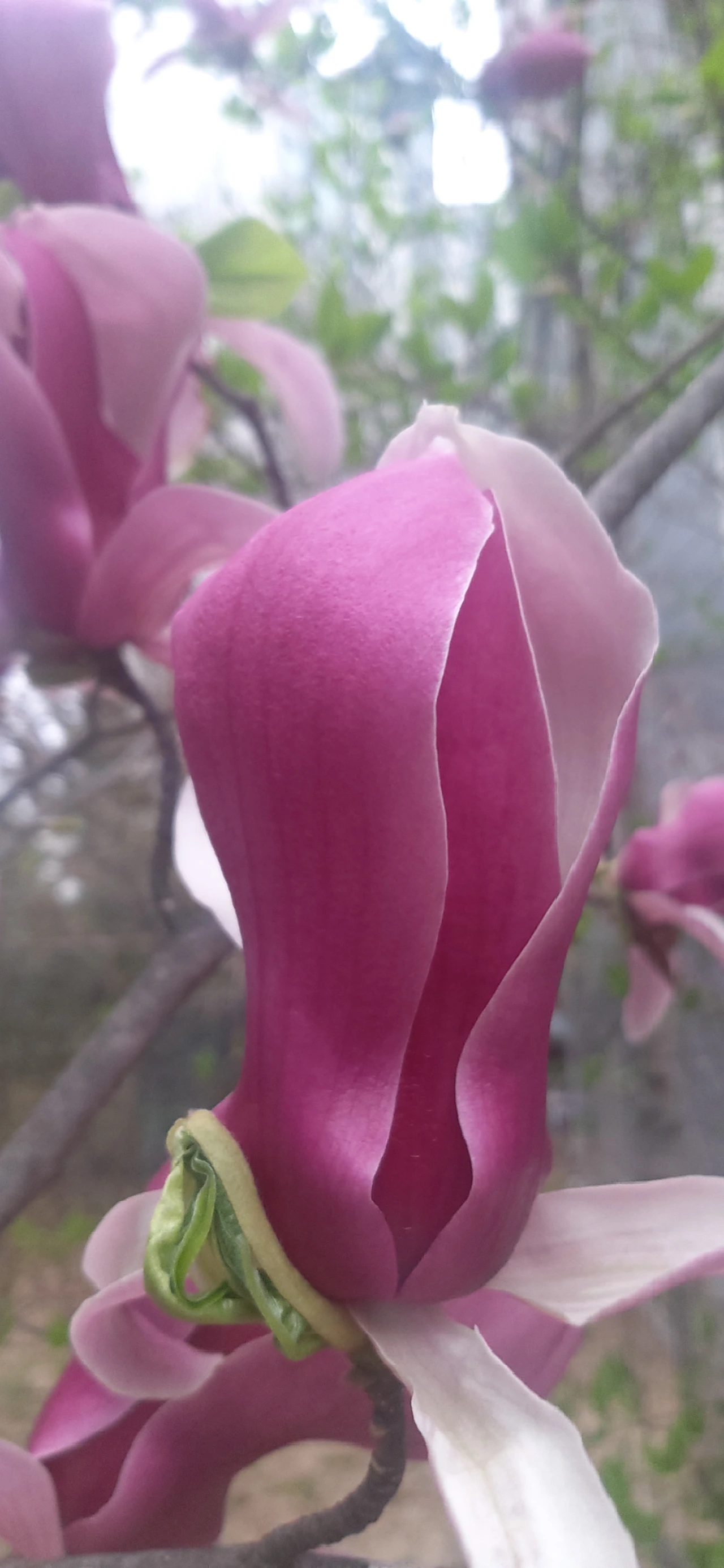 자목련 한송이 보랏빛 한복