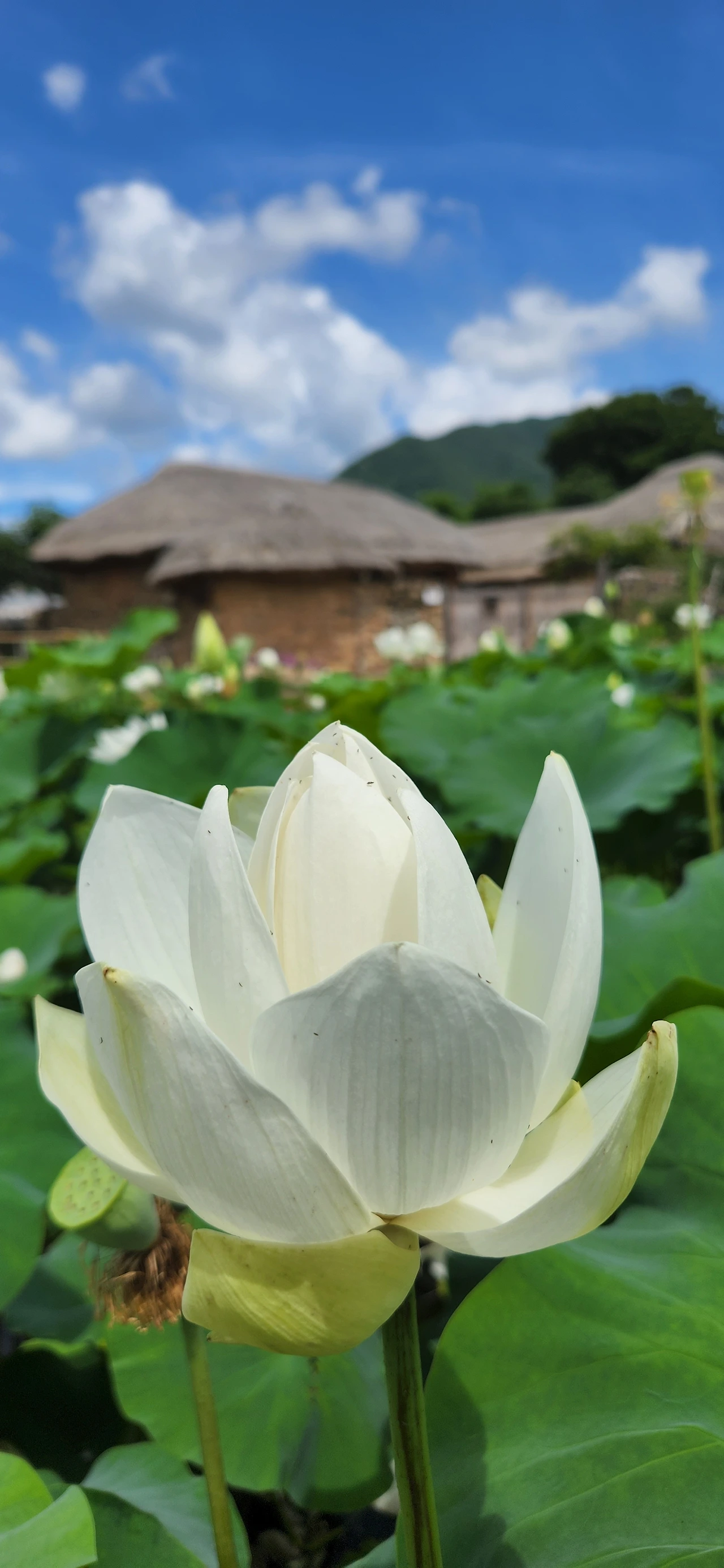 초록잎 활짝 펼쳐 띄우던 백연이
