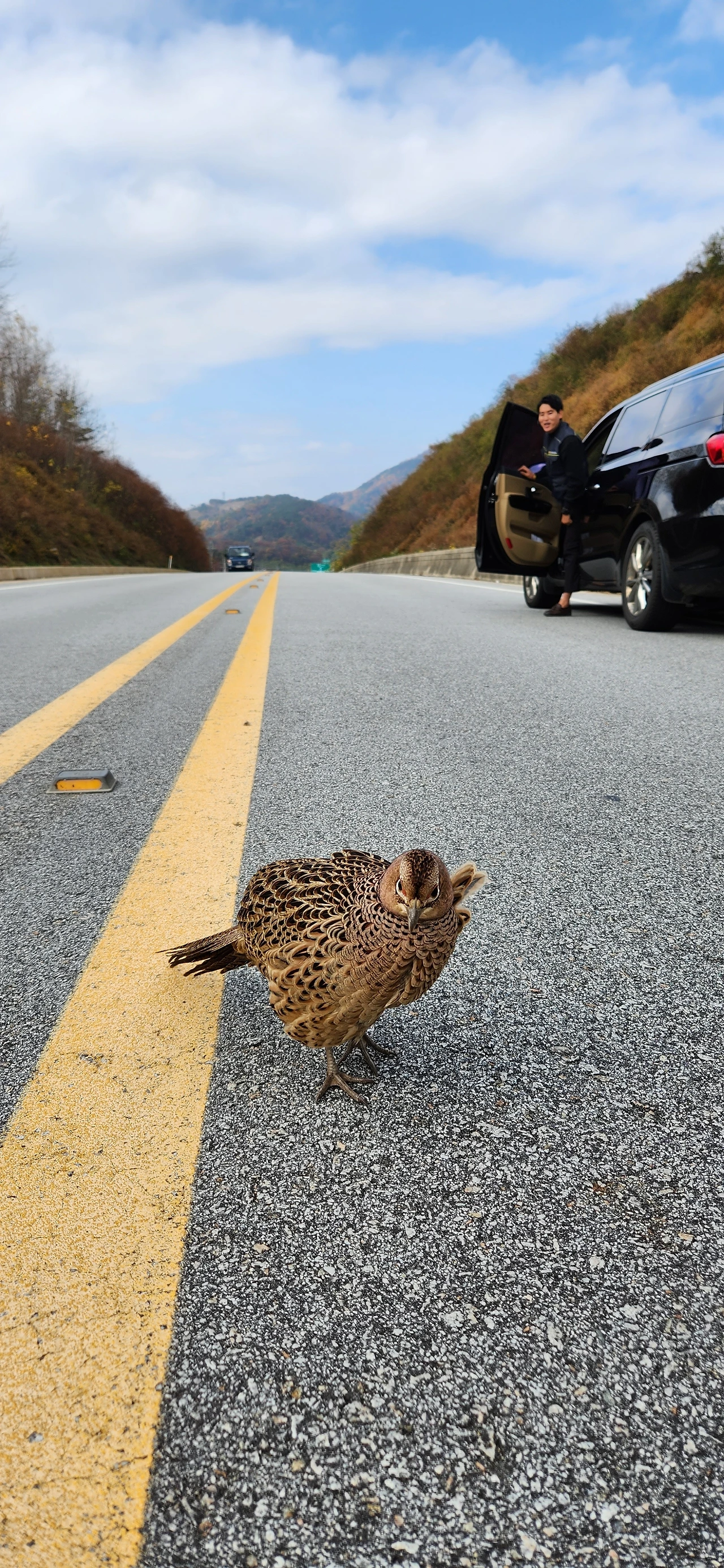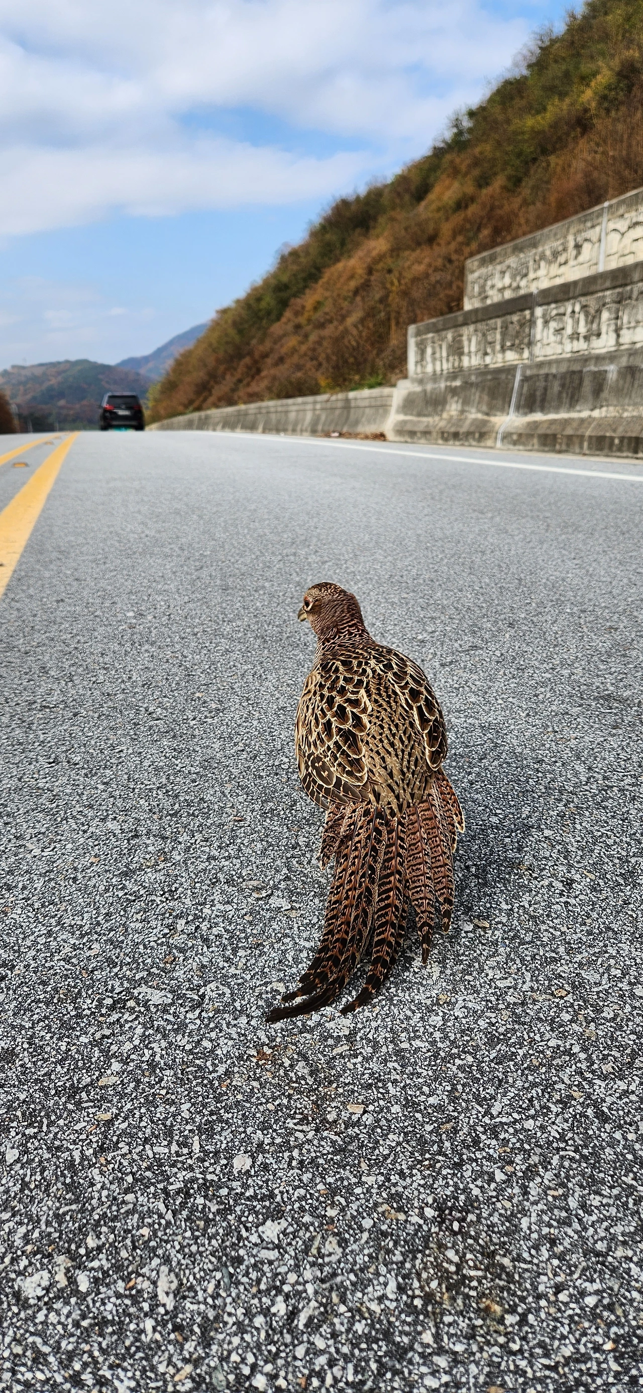도로 중앙선에 어린 장끼가