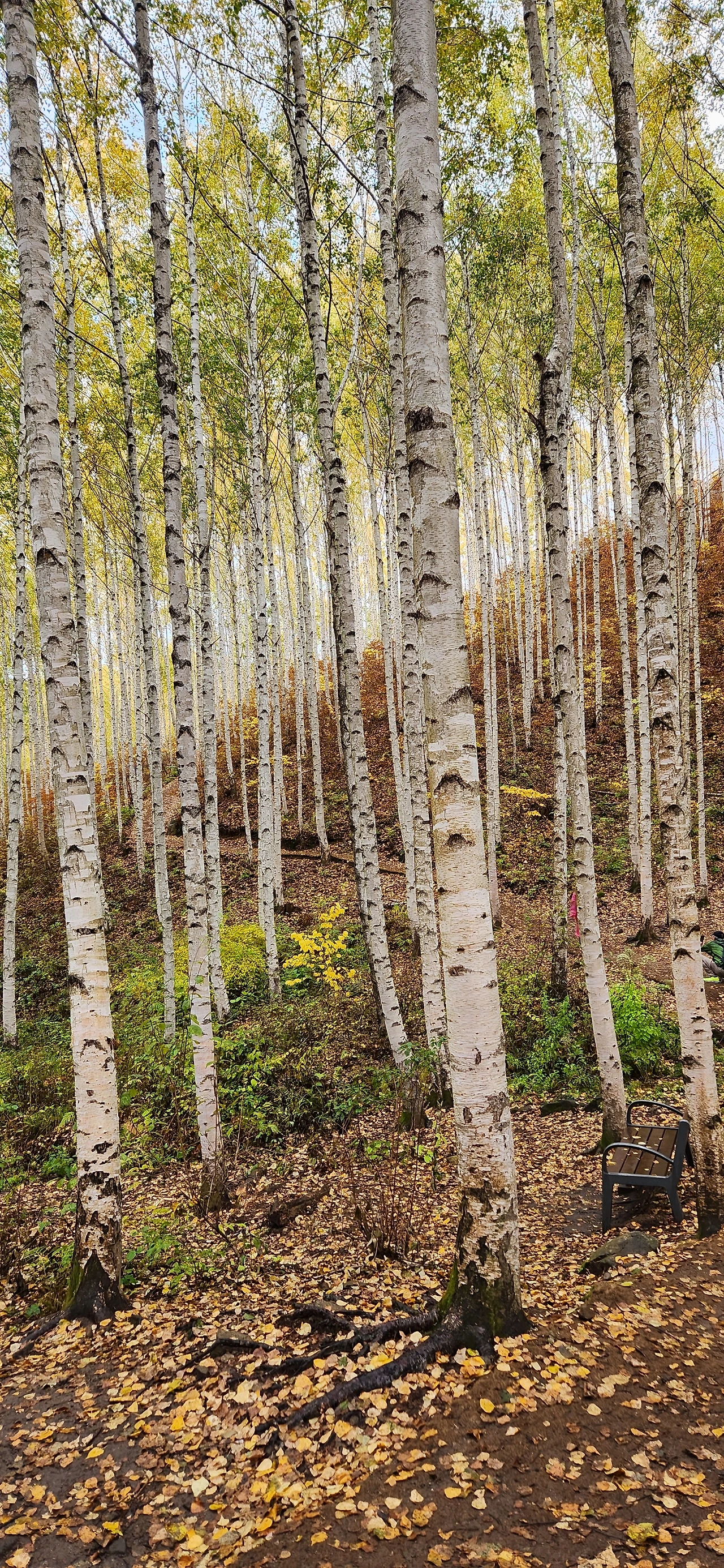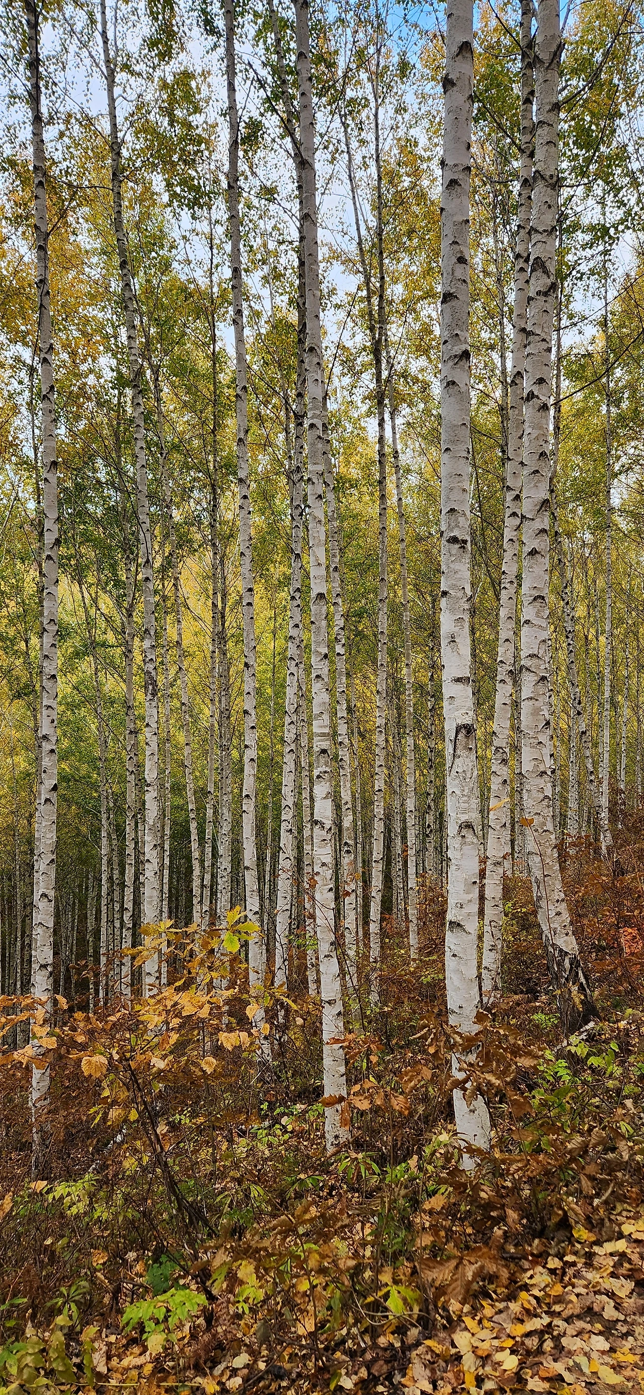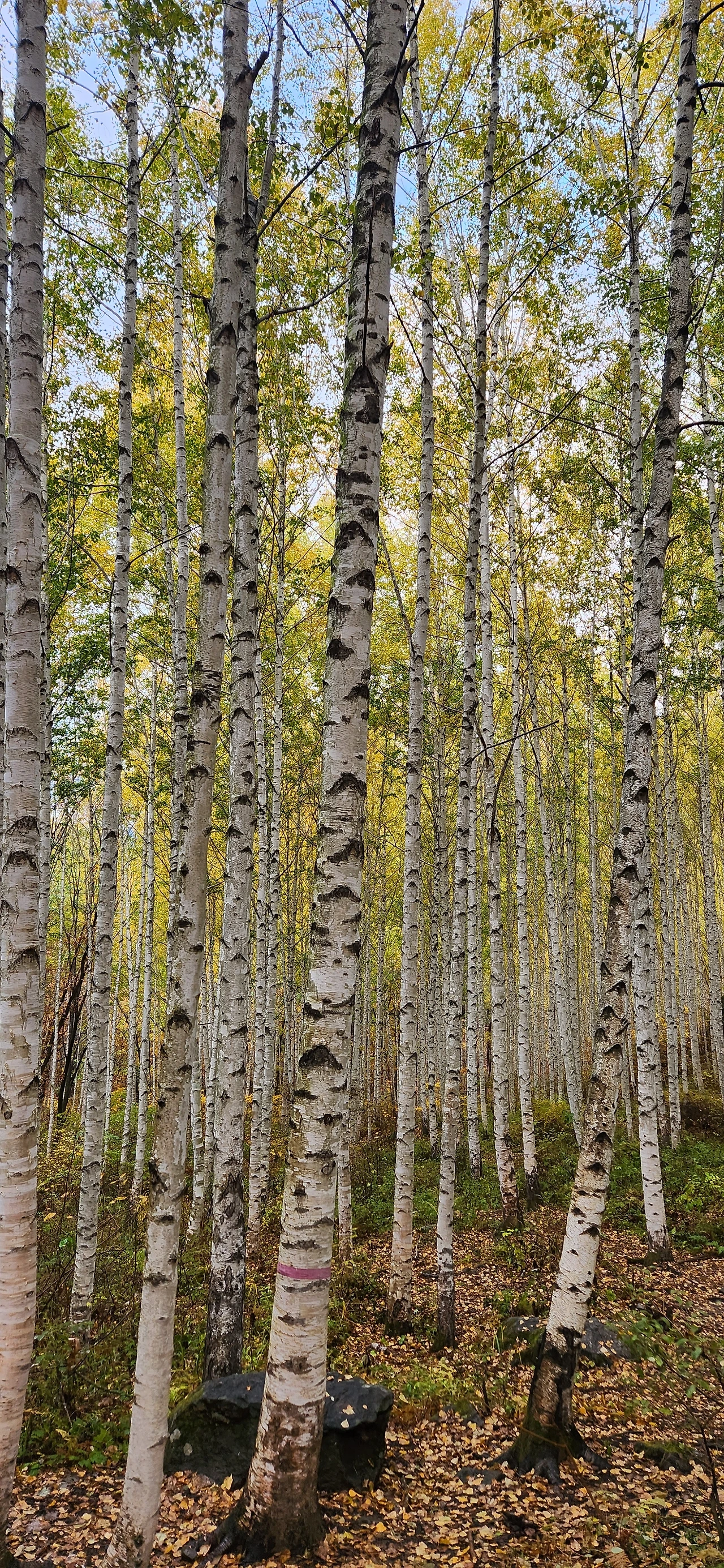 곧게 자란 자작나무 숲에