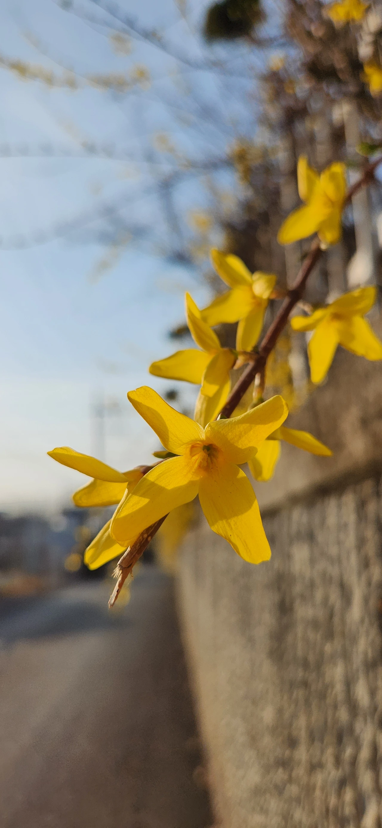 봄 마실 나온 개나리 먼산 보듯