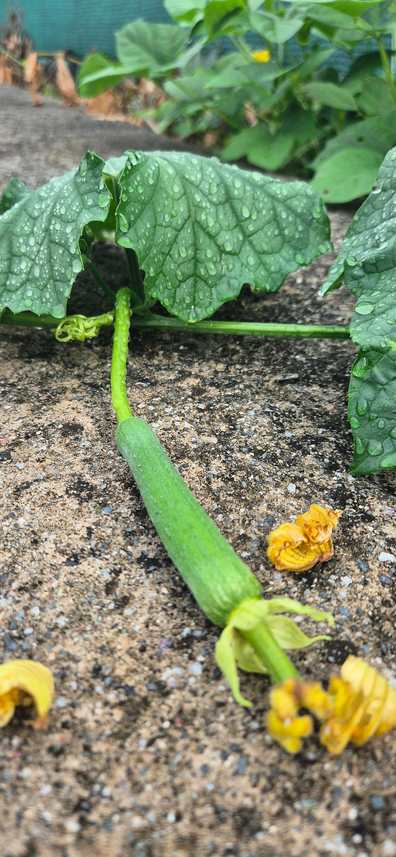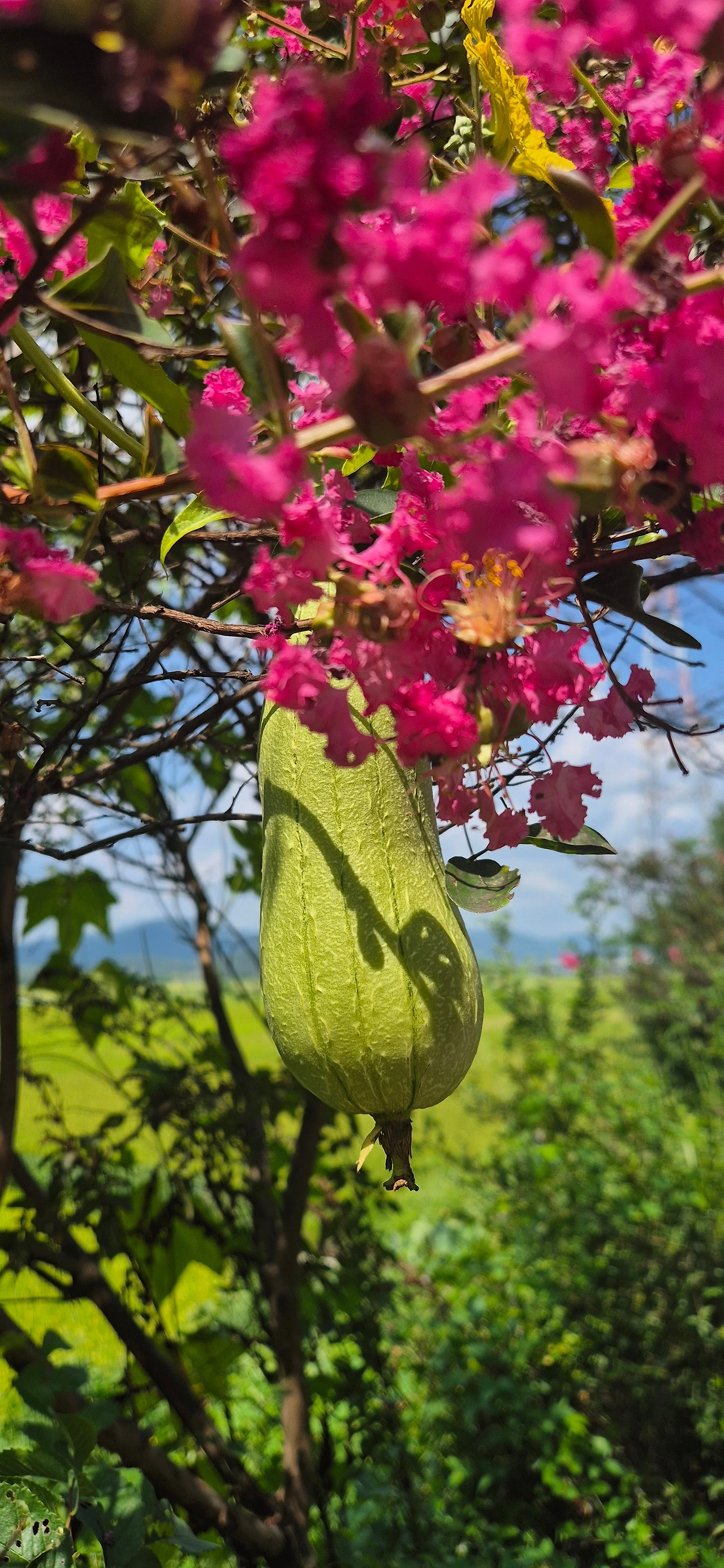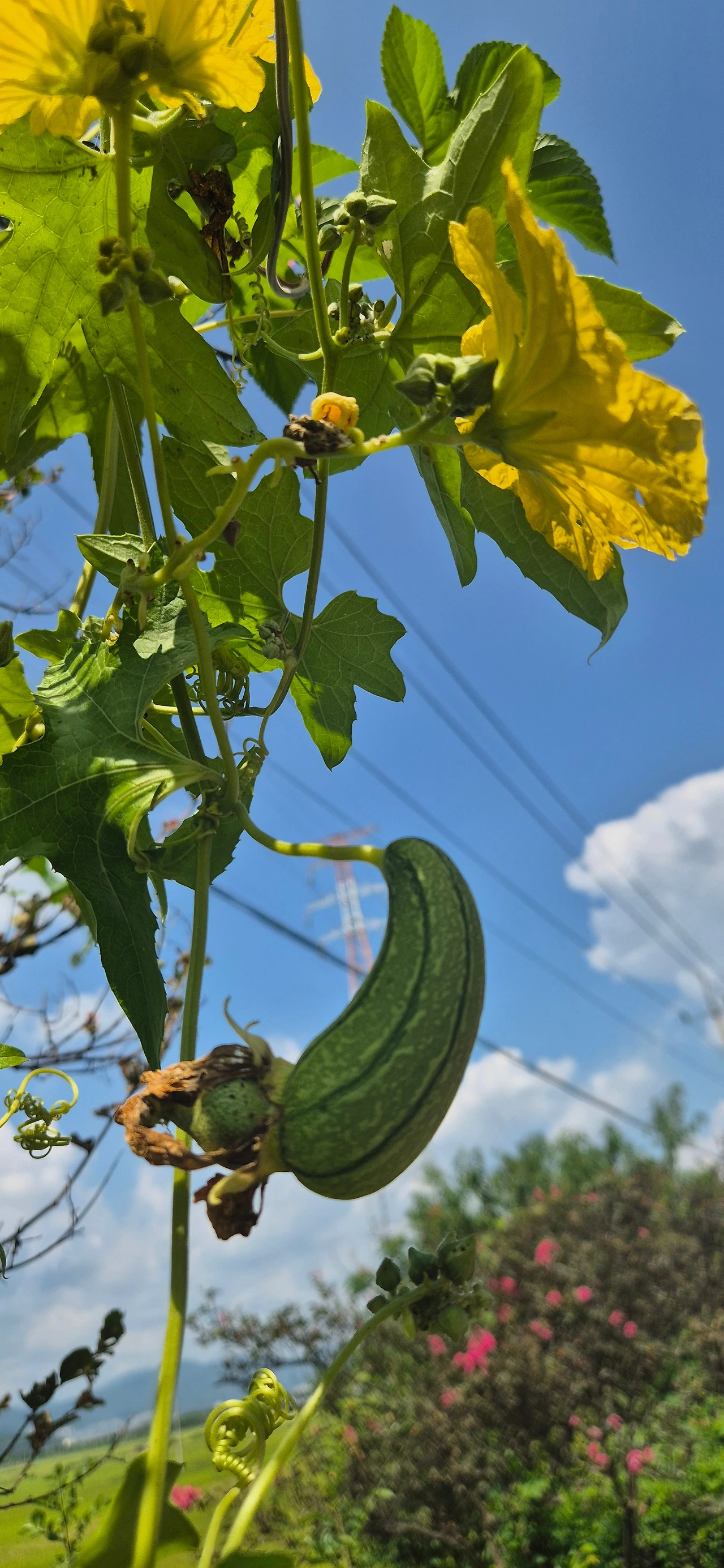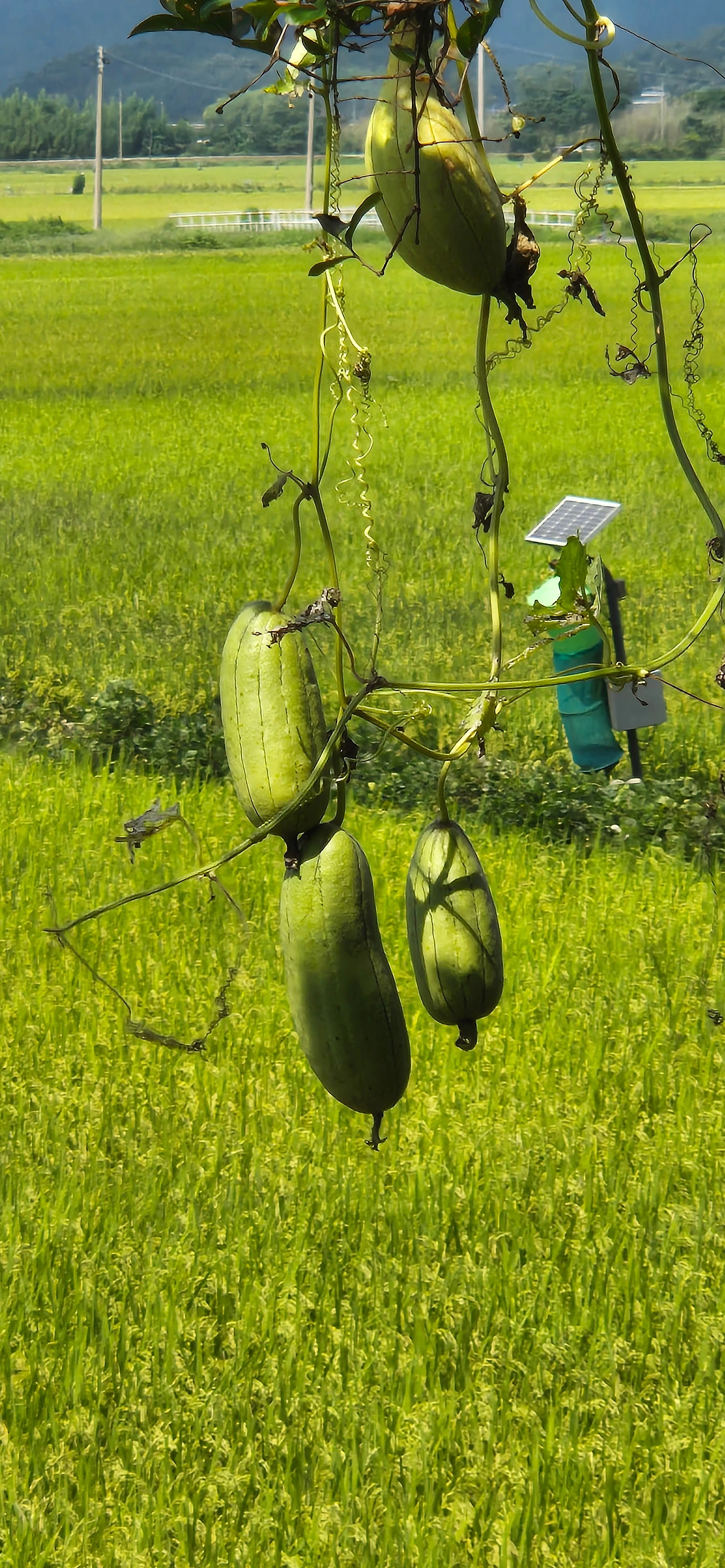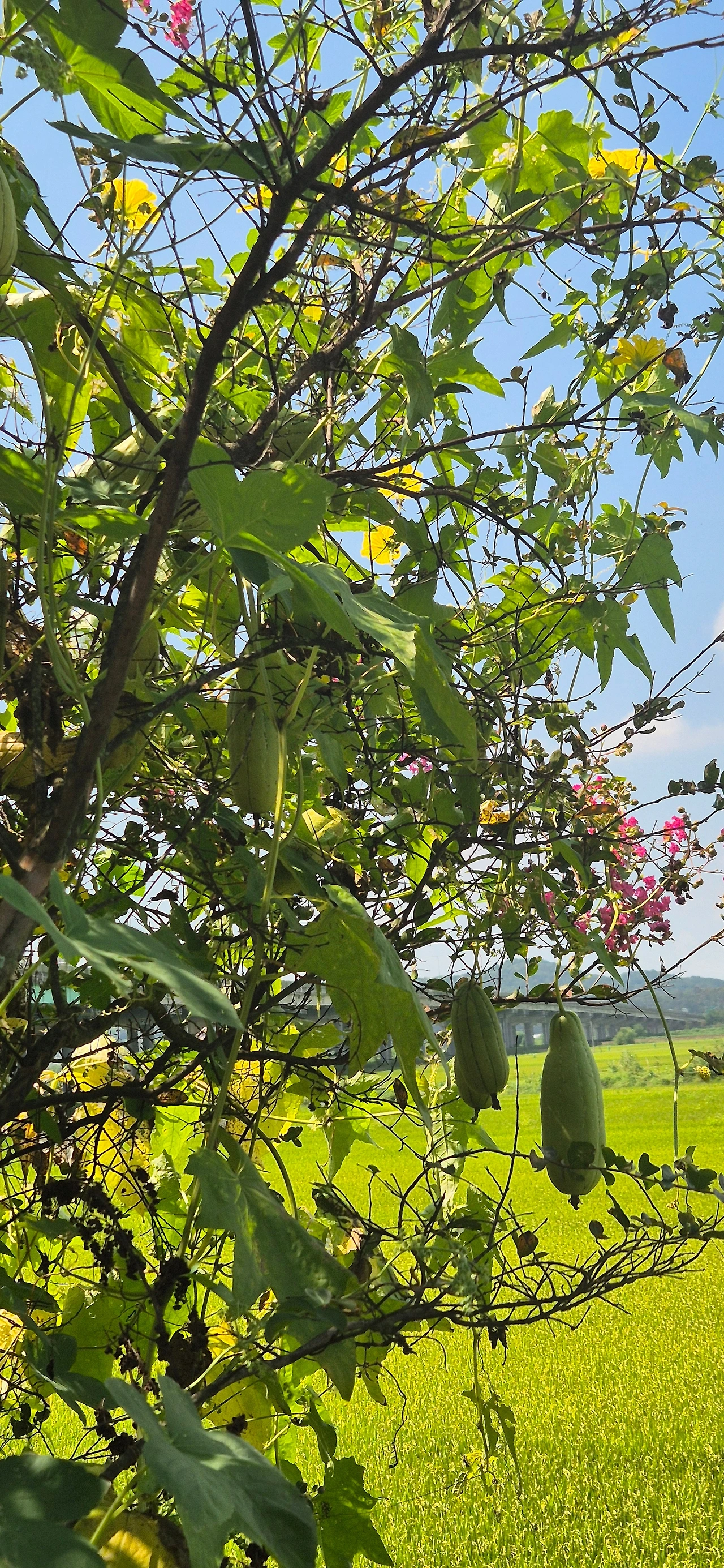 초록으로 맺어진 열매 길게 늘어 뻗어