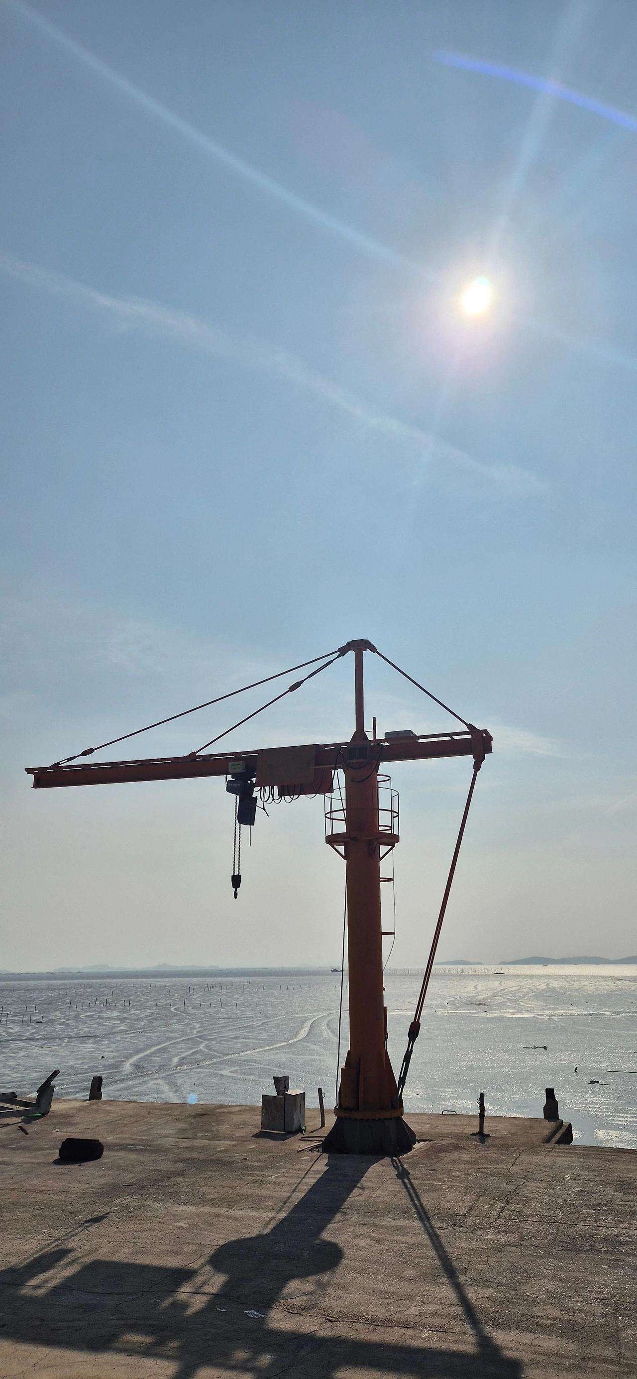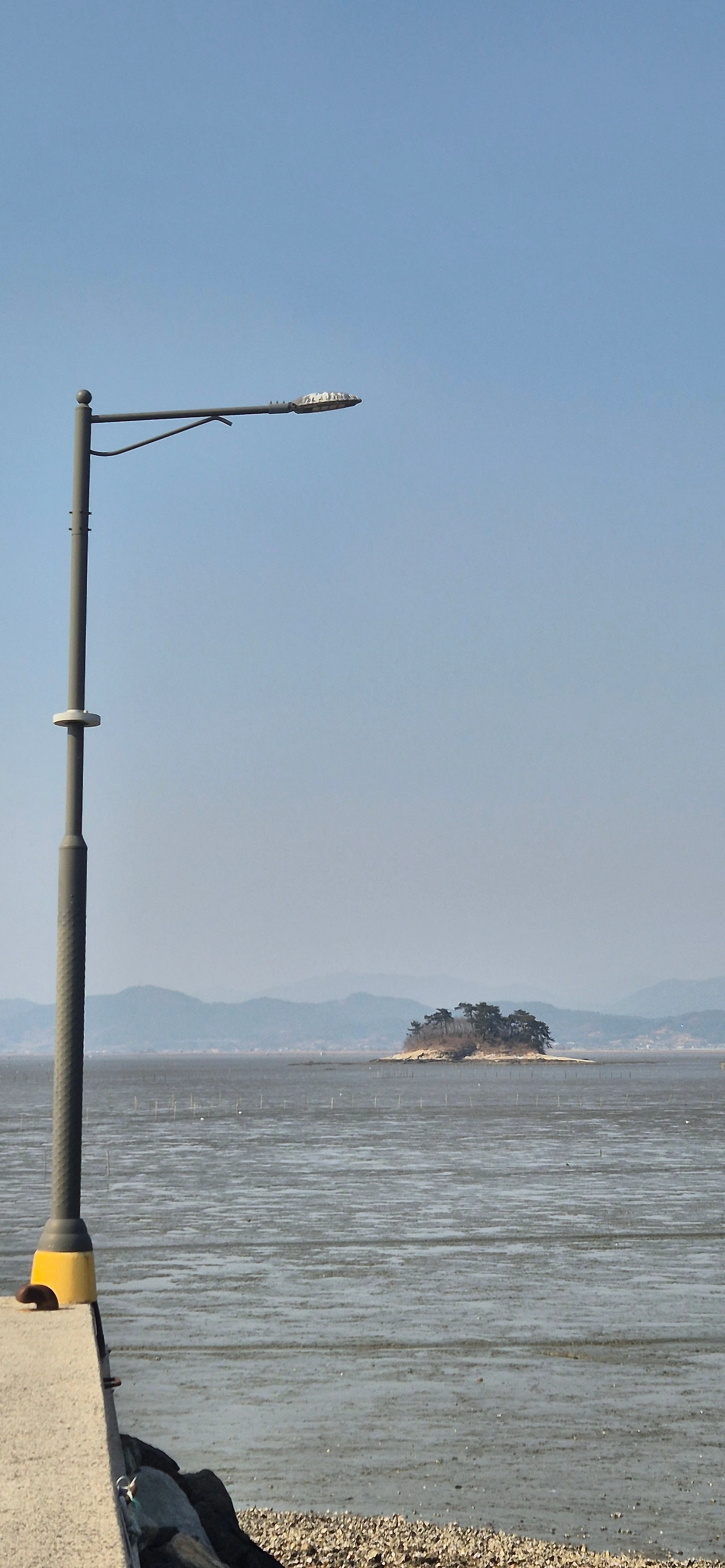 선착장 모서리 위태롭게 서있는 가로등