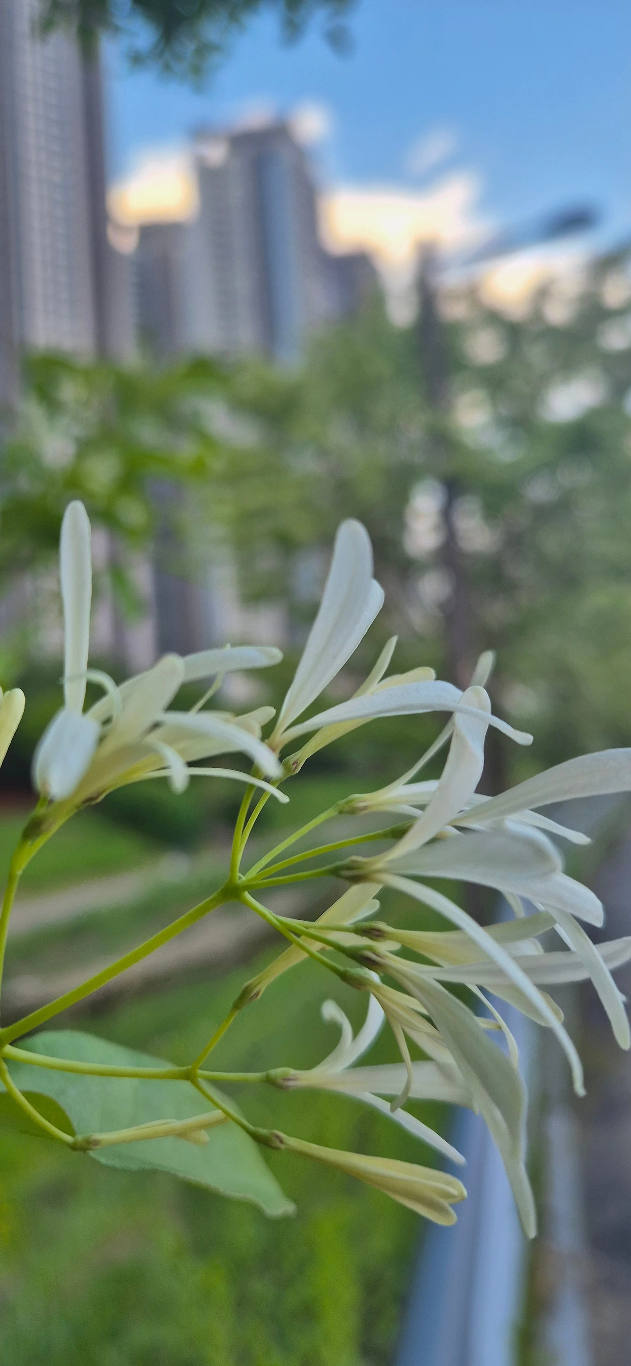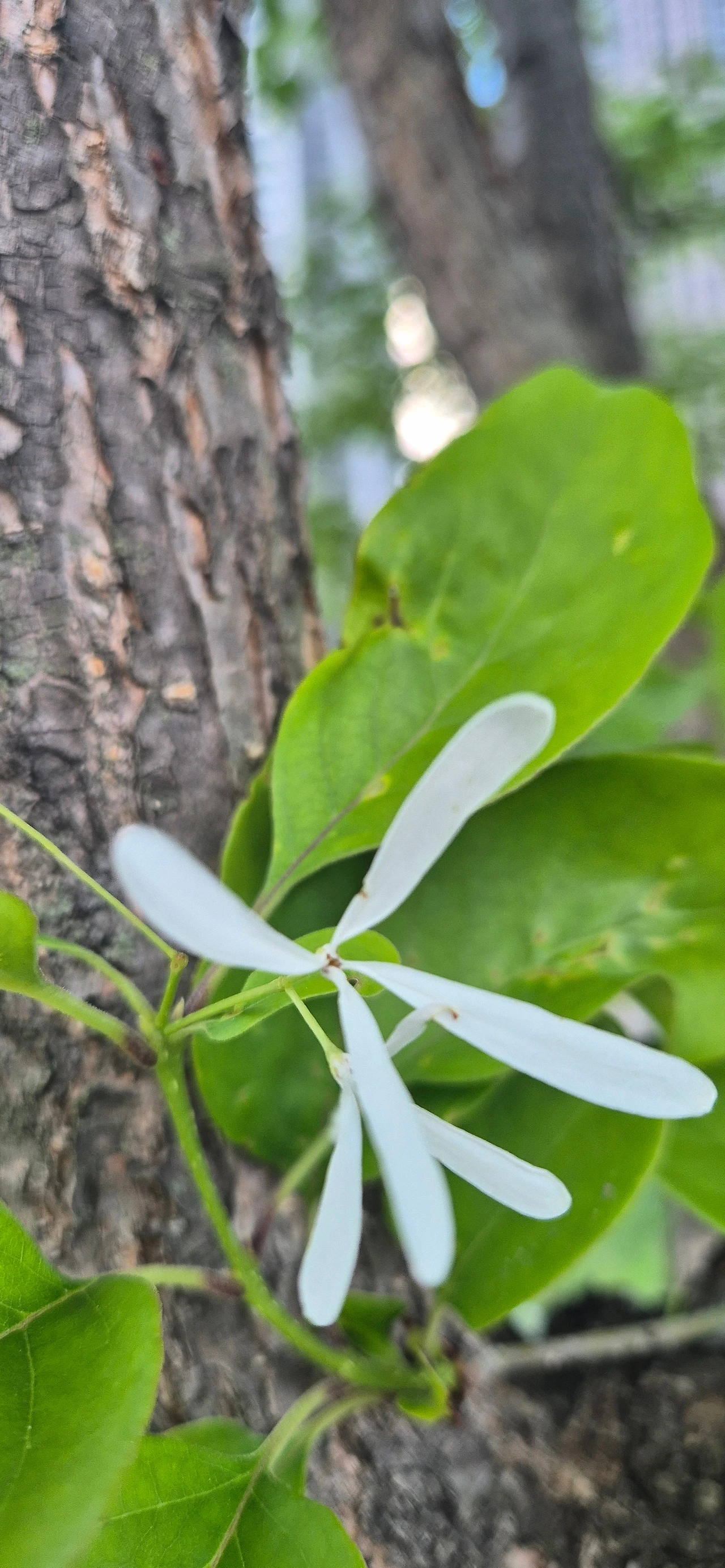 하얀 눈꽃은 네 개 꽃잎으로 갈라져