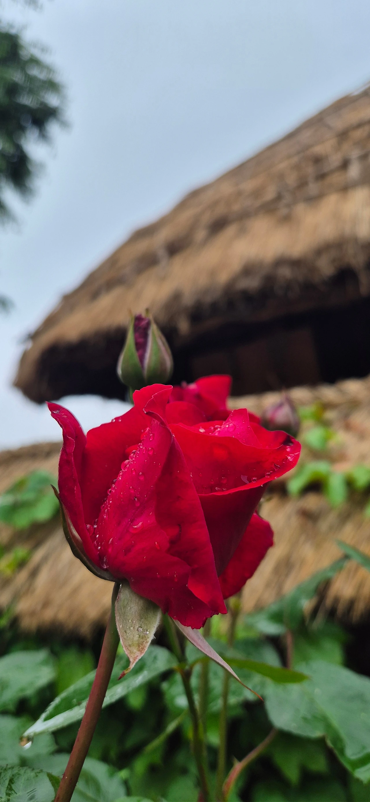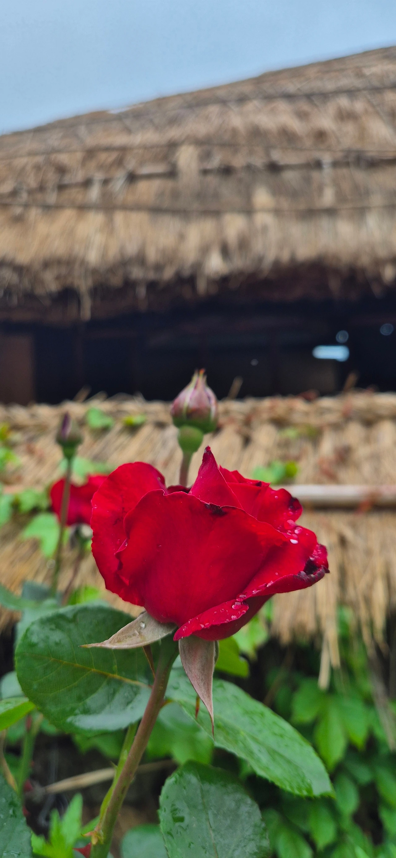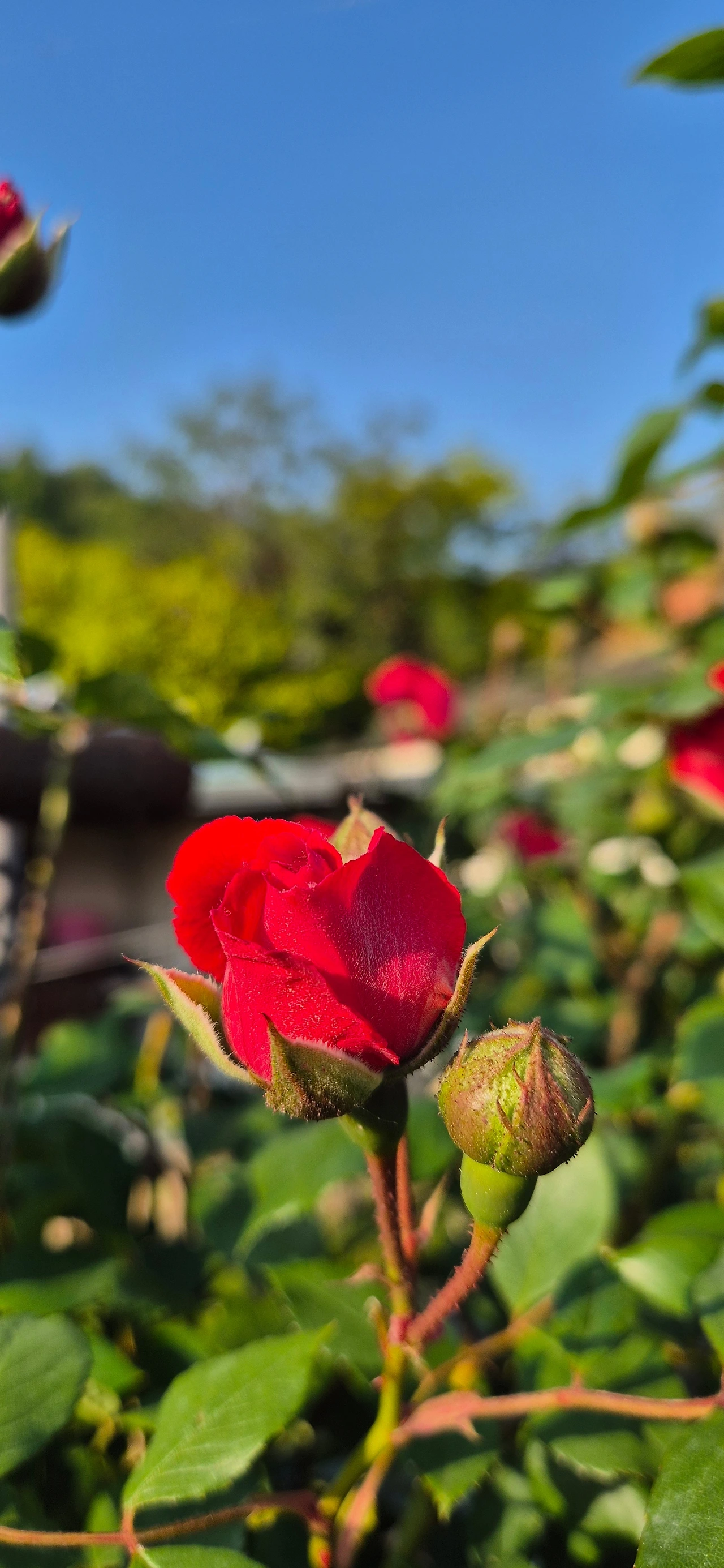 장미가 빨갛게 고개를 내밀고