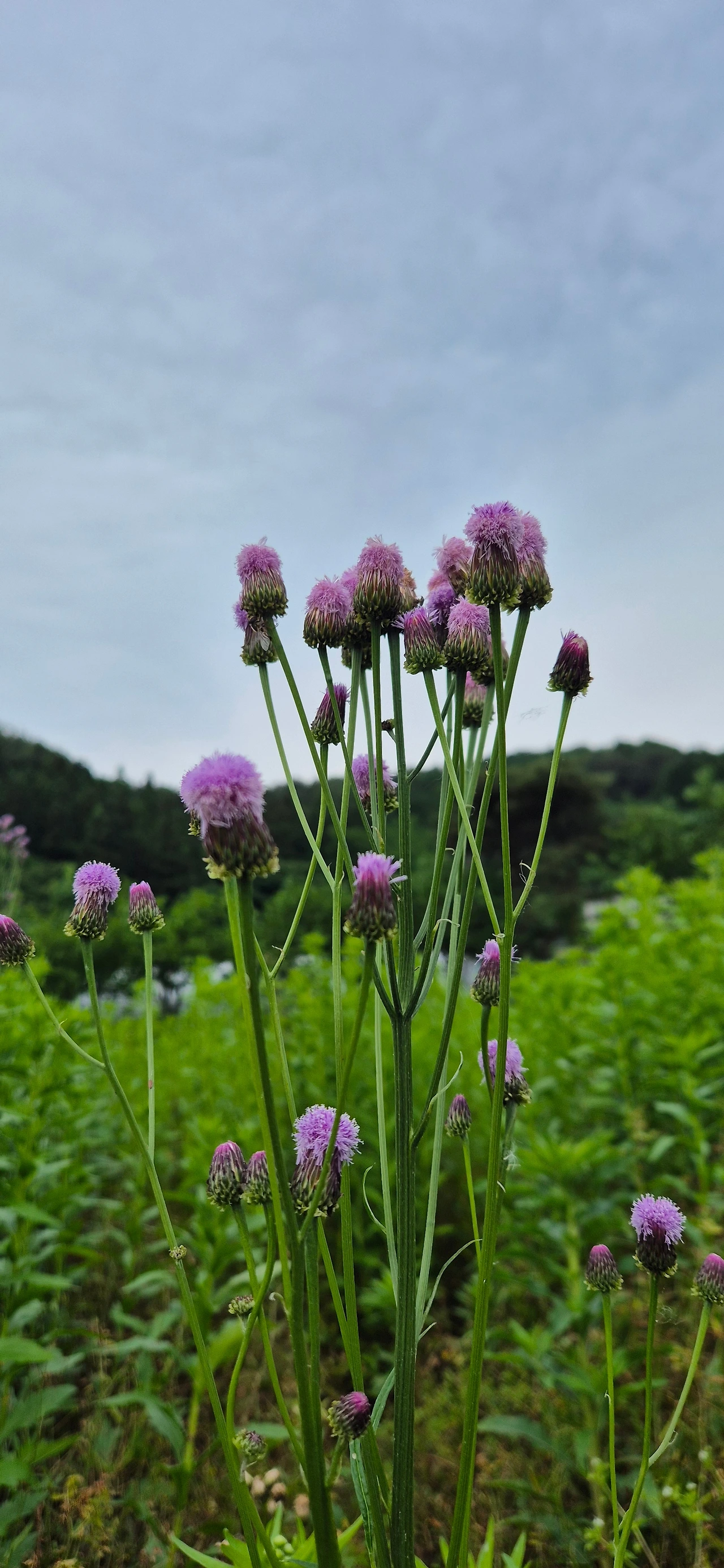 엉겅퀴꽃 위에 엉덩방아 찧어