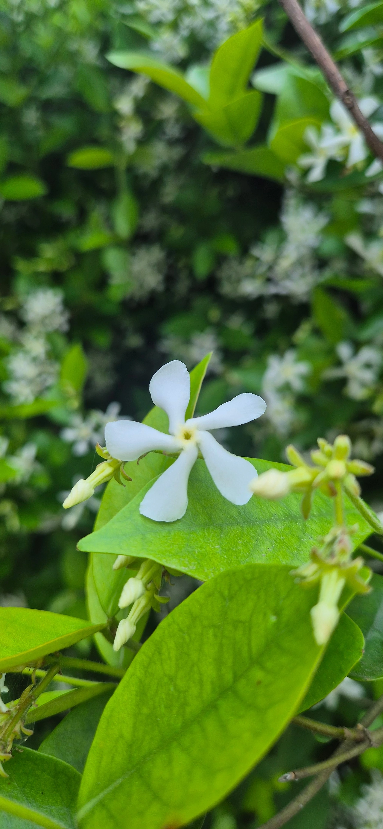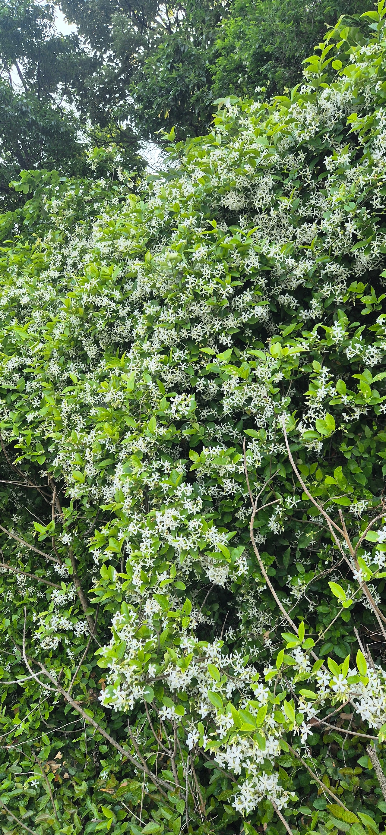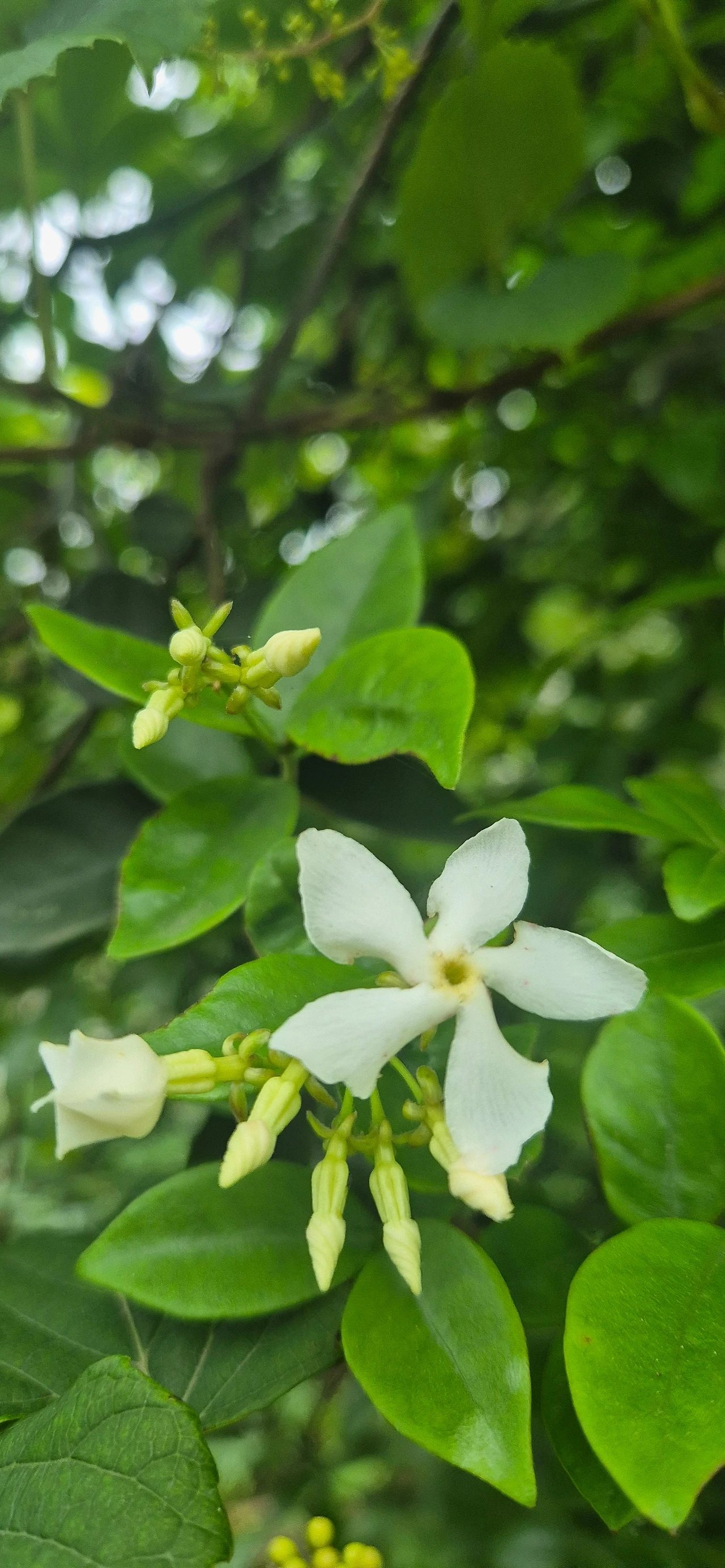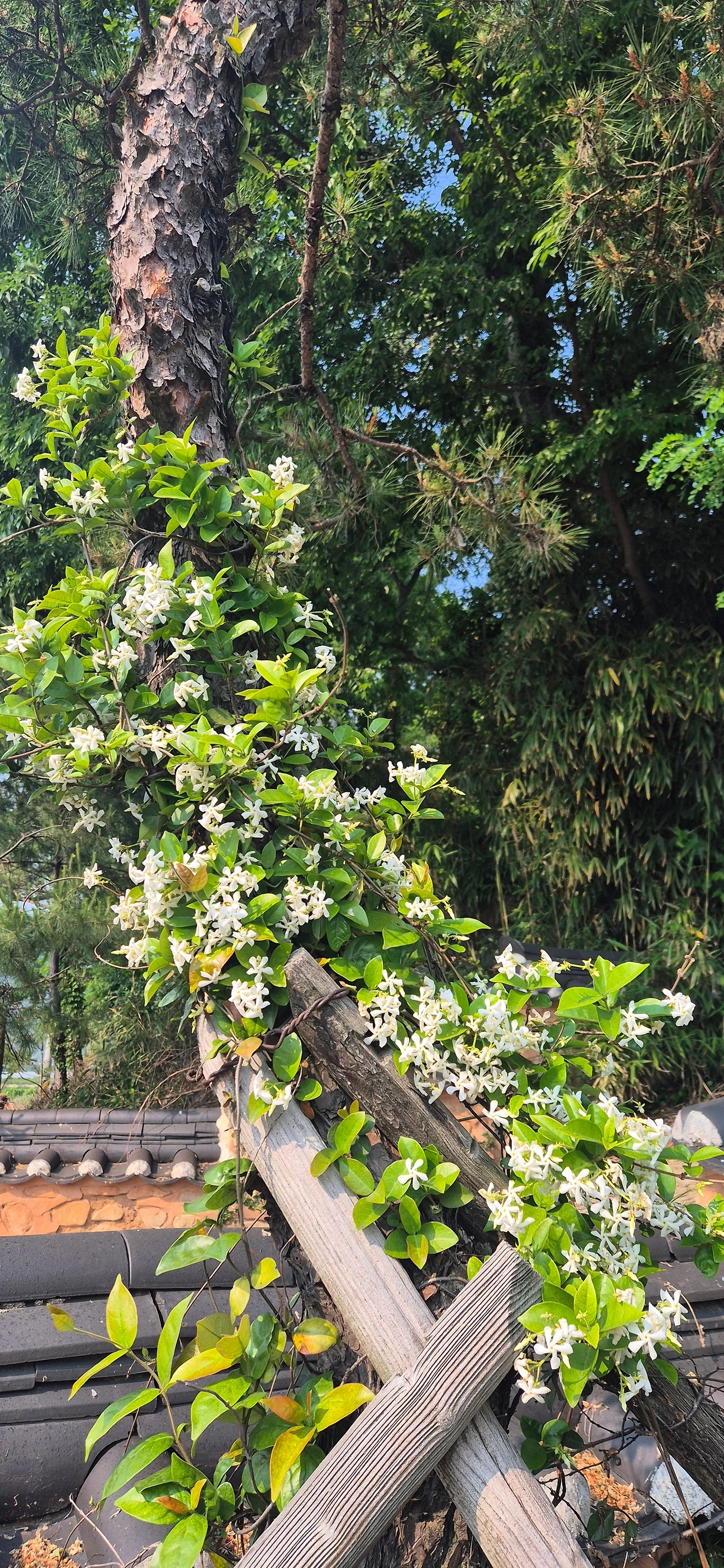 오른쪽으로 감아 돌아 피어난 흰꽃