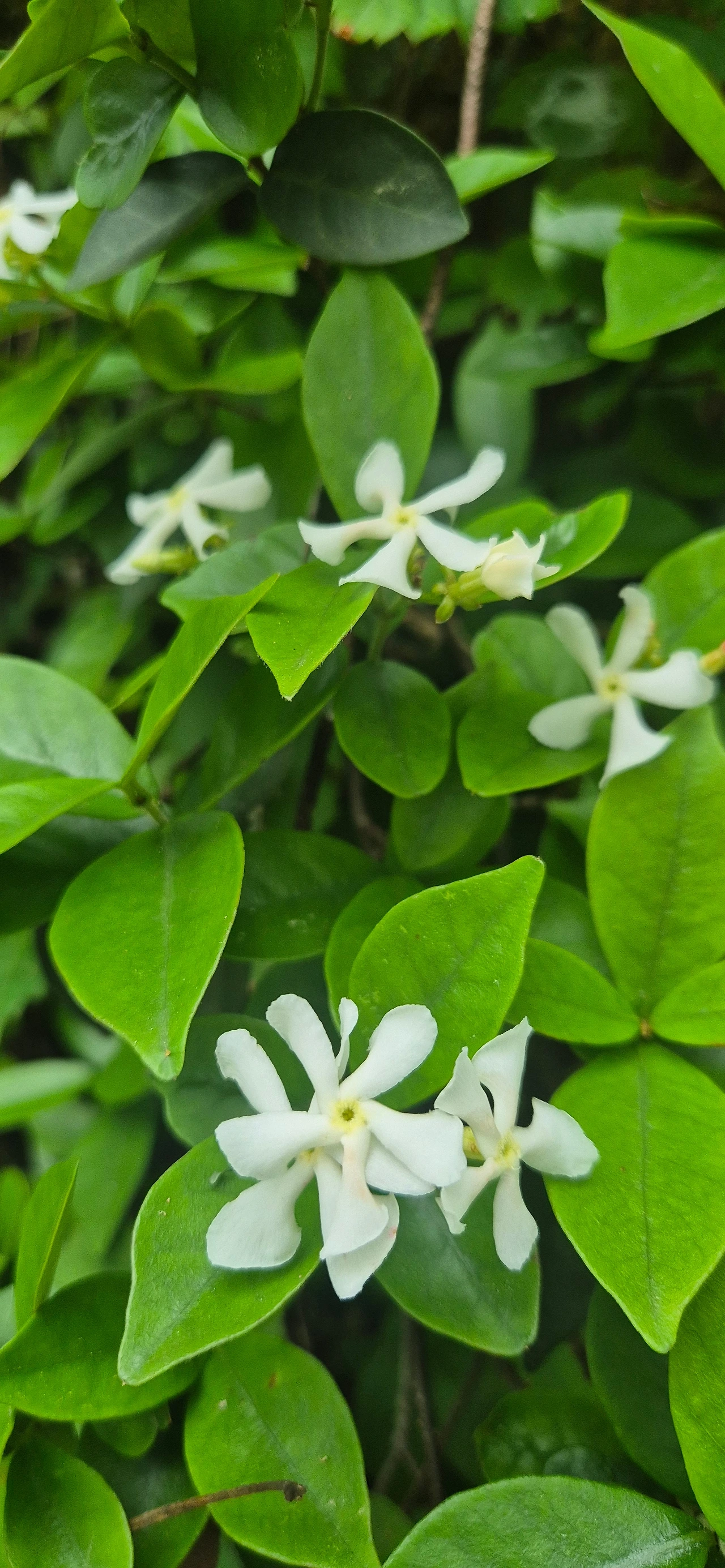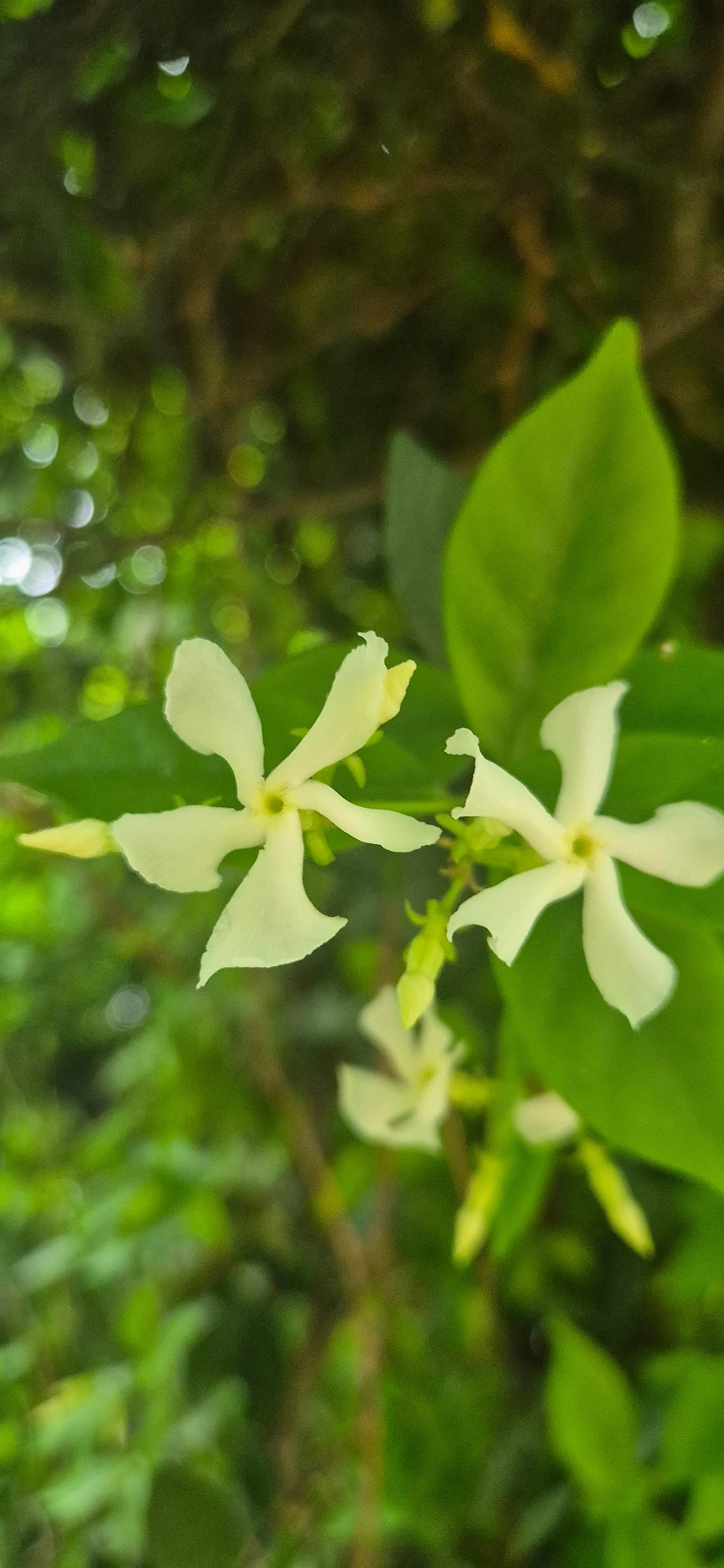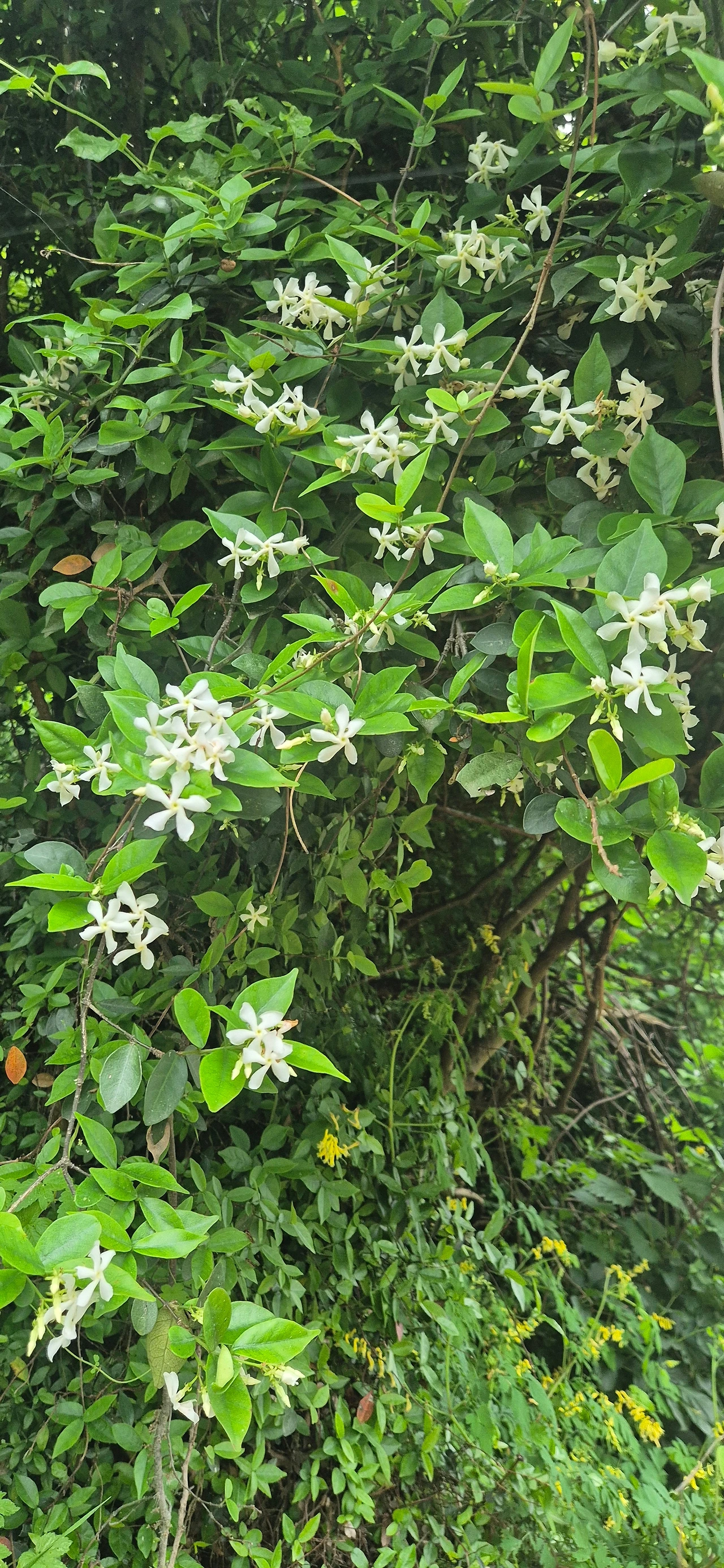 오른쪽으로 감아 돌아 피어난 흰꽃