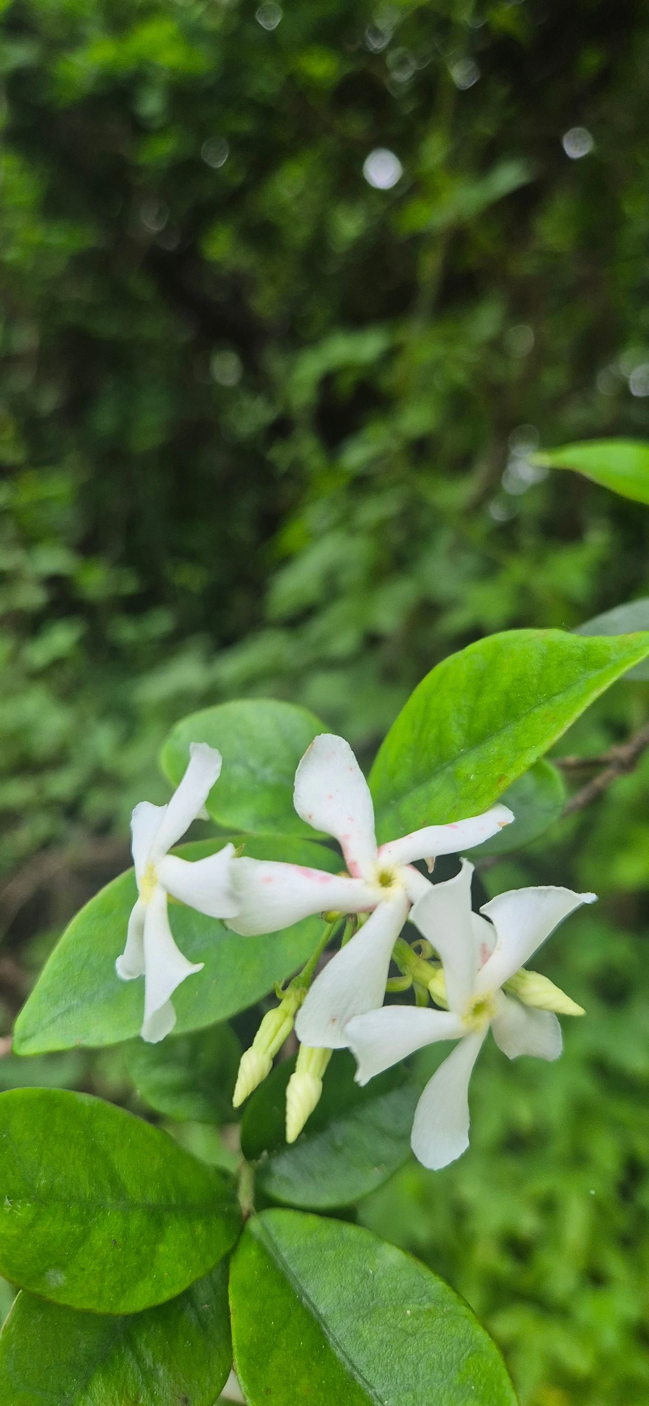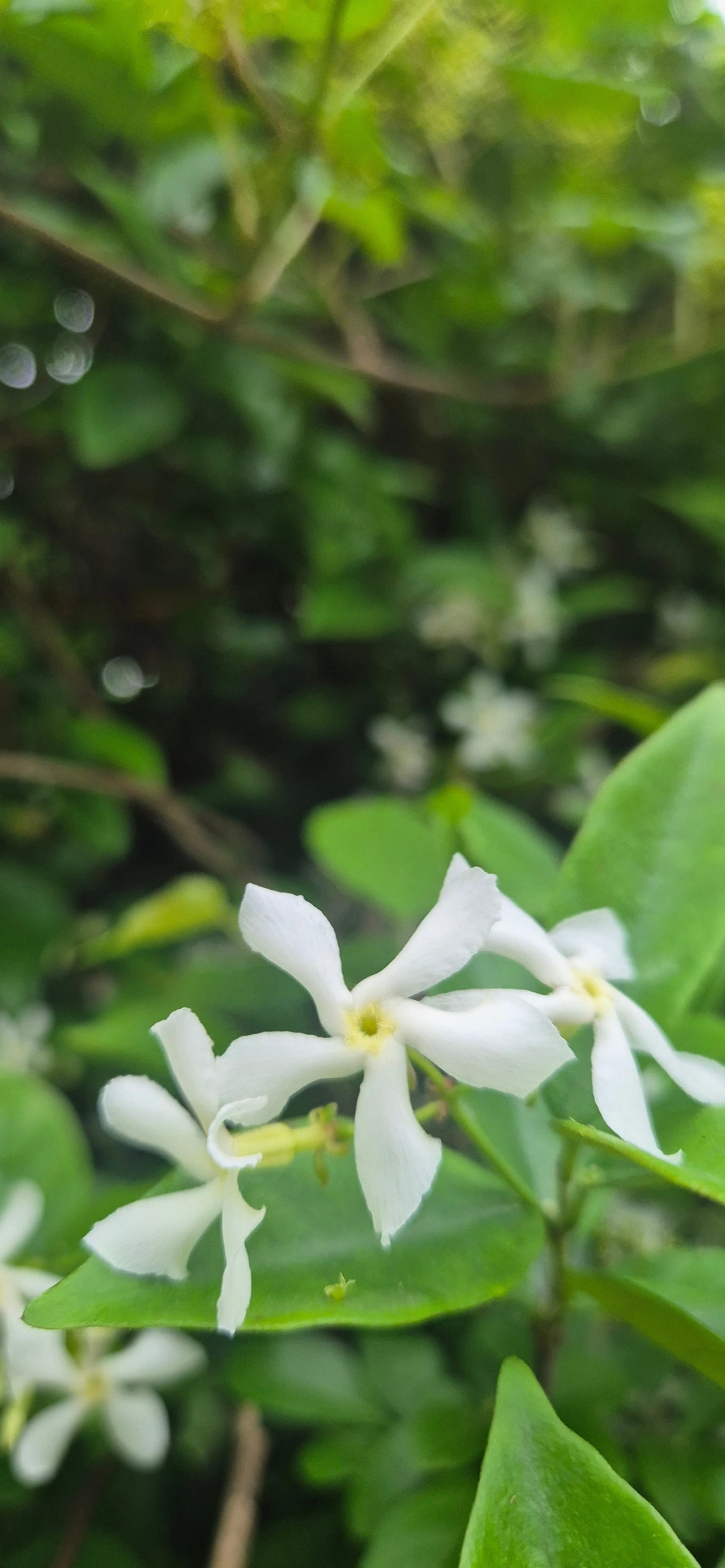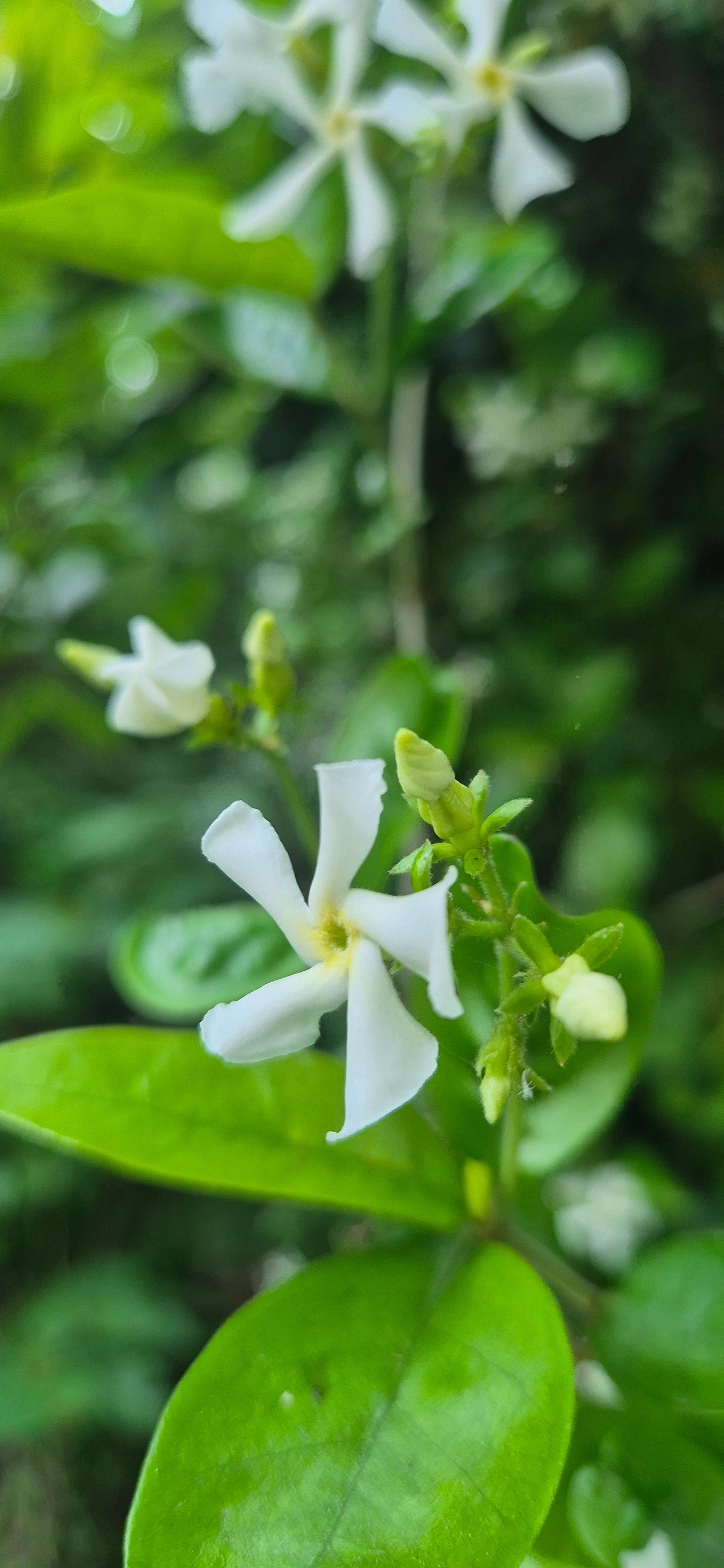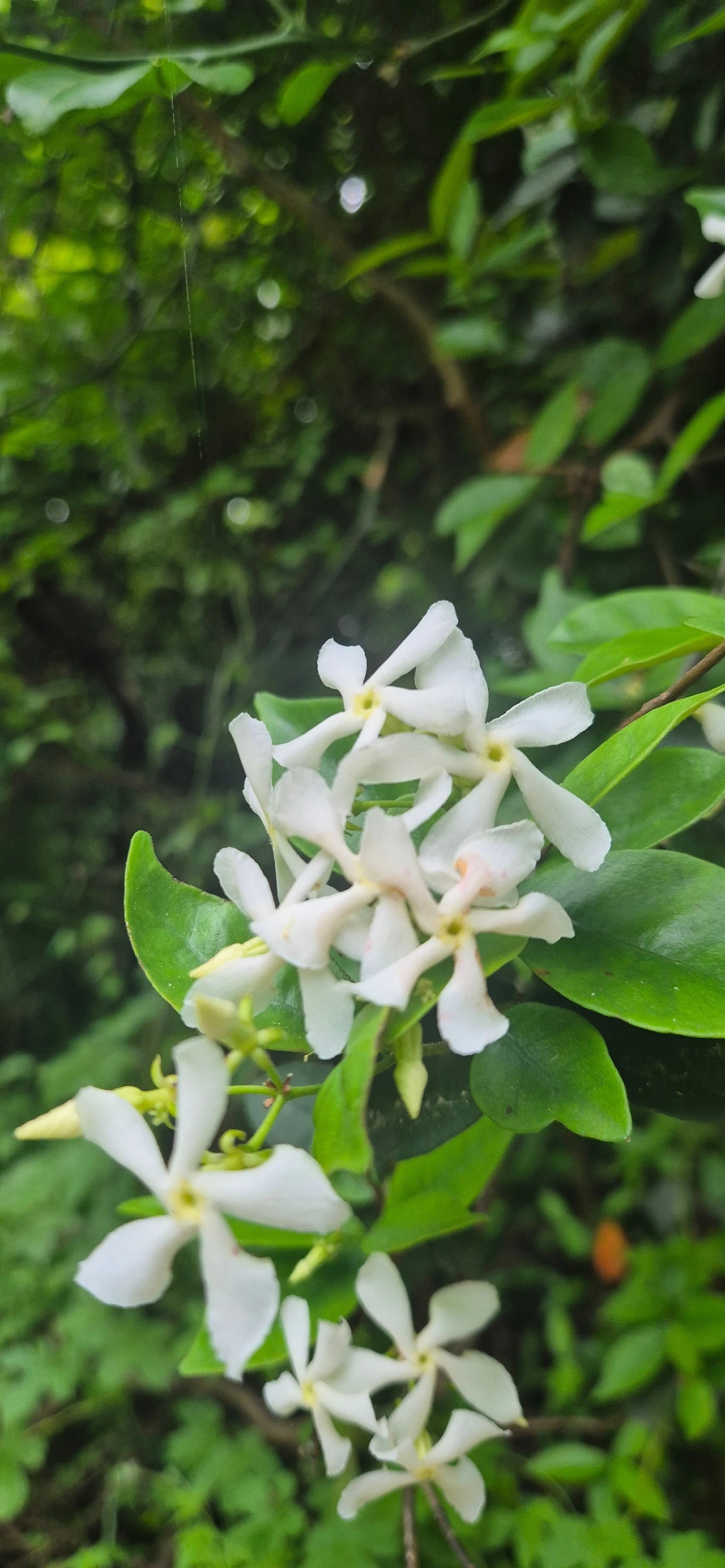 오른쪽으로 감아 돌아 피어난 흰꽃