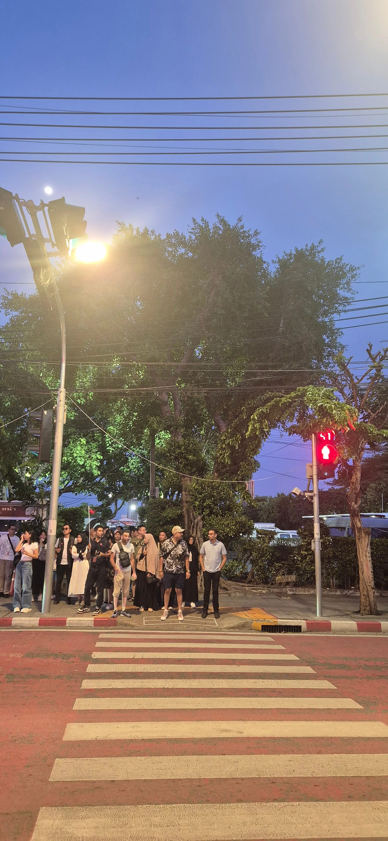 빨간 신호등 앞에 멈춰 선 사람들처럼