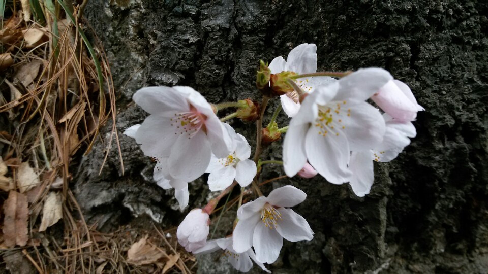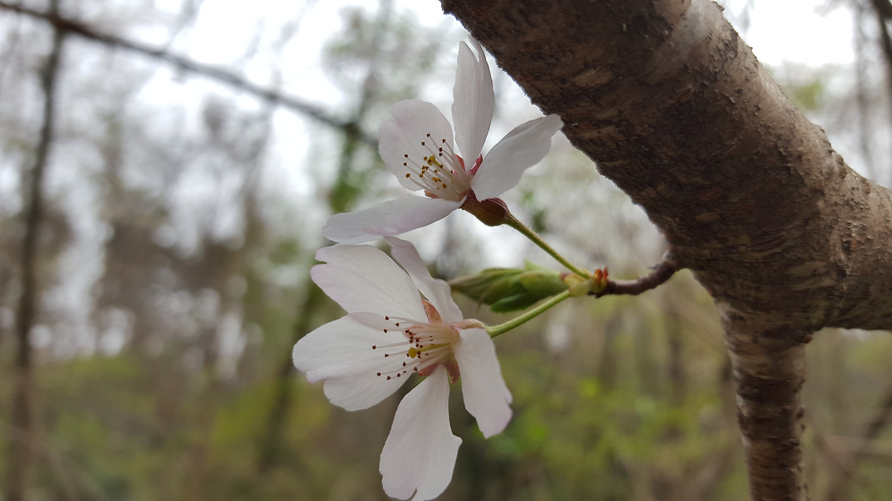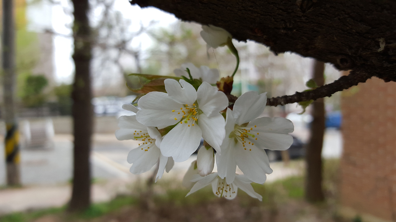 벚꽃 몇 송이 흩뿌려