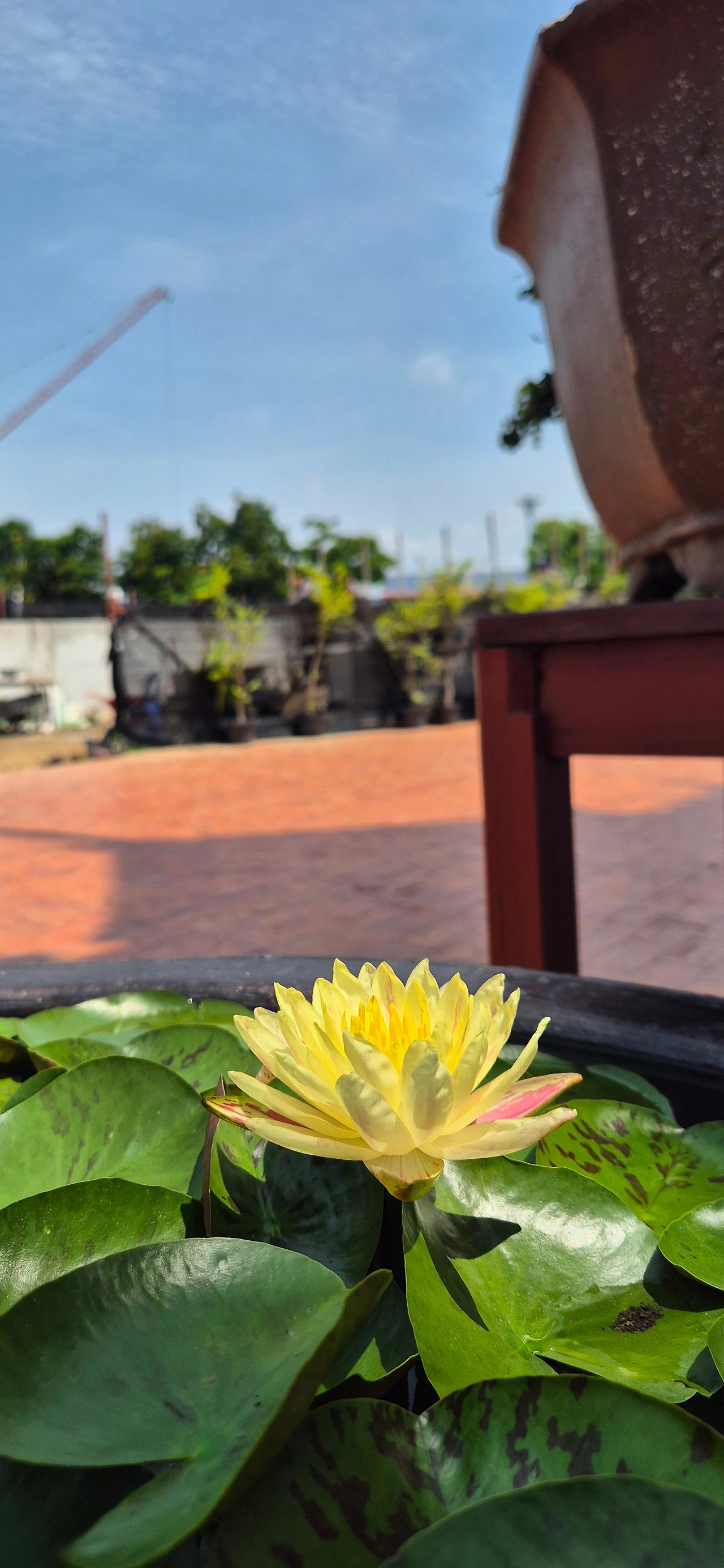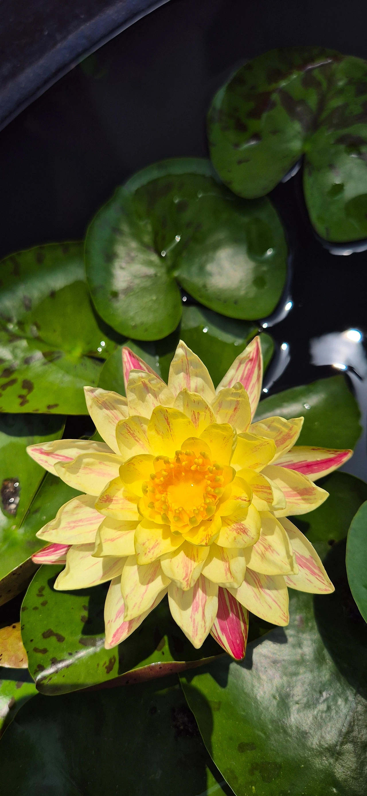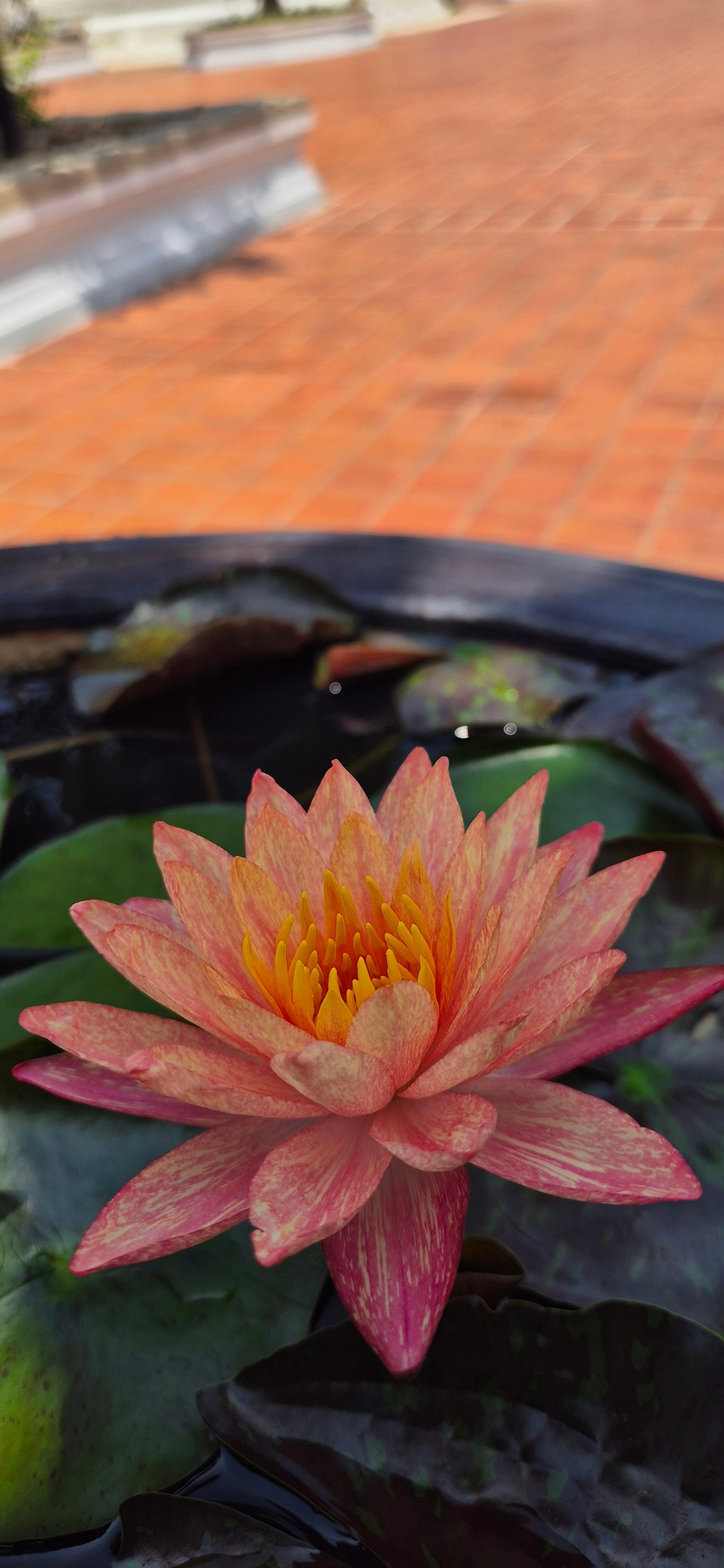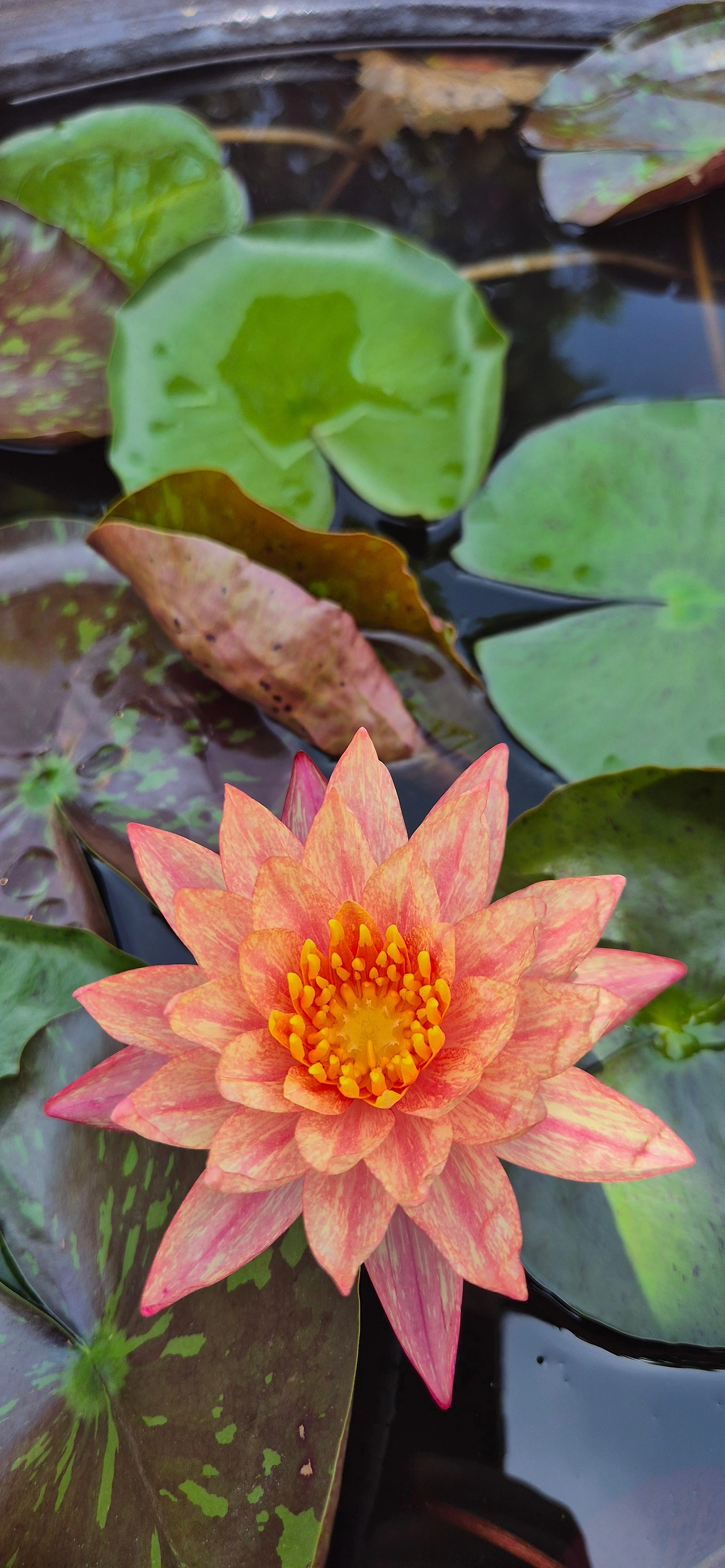 물 위에 동그란 잎사귀 깔고 앉은